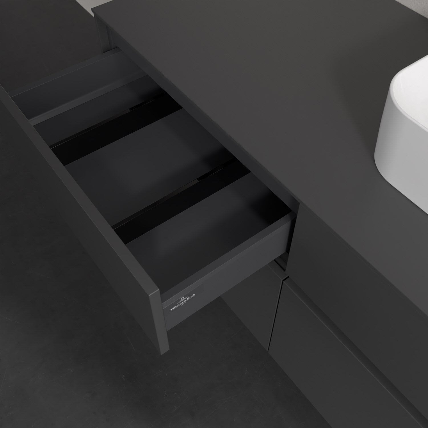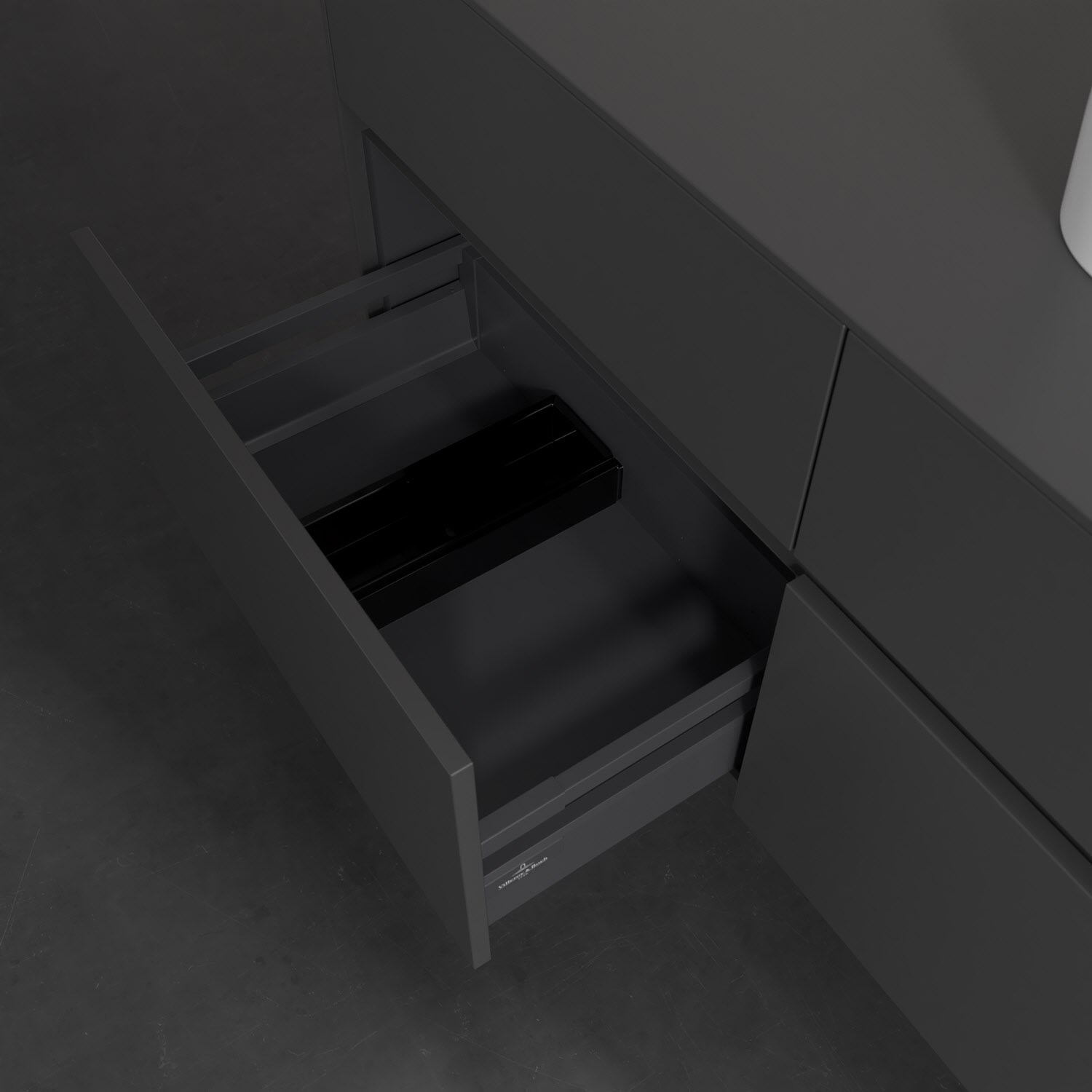 Stauraumwunder im zeitgemäßen Design: Der Villeroy & Boch Waschbeckenunterschrank aus der Collaro Kollektion eignet sich besonders für Familienbäder und bietet genau den Platz, der dort benötigt wird. Eine integrierte Griffleiste sorgt für eine schlichte, moderne Front. Steuern lässt sich das Licht über einen Touch-Sensor seitlich am Unterschrank. Im Inneren bietet das Möbelstück mit vier Auszügen erstaunlich viel Komfort – ermöglicht durch großzügiges Platzangebot und den integrierten Antirutschboden. Variabel setzbare Glasabtrennungen und mitgelieferte Accessory Boxen sorgen für den nötigen Überblick. Dank SoftClosing und Selbsteinzug lassen sich die Auszüge nach der Nutzung lautlos schließen. Die Front ist mit einer hochwertigen Lackierung versehen, deren Anti-Fingerprint-Oberfläche unschönen Fingerabdrücken vorbeugt.