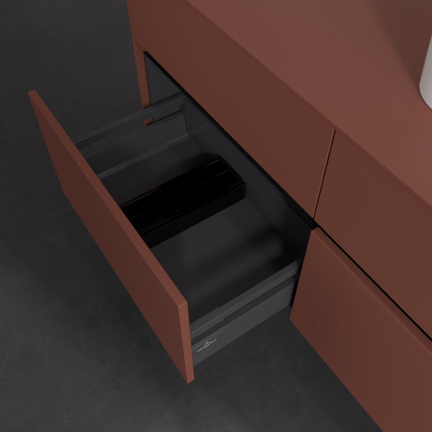 Stauraumwunder im zeitgemäßen Design: Der Villeroy & Boch Waschbeckenunterschrank aus der Collaro Kollektion eignet sich besonders für Familienbäder und bietet genau den Platz, der dort benötigt wird. Eine integrierte Griffleiste sorgt für eine schlichte, moderne Front. Steuern lässt sich das Licht über einen Touch-Sensor seitlich am Unterschrank. Im Inneren bietet das Möbelstück mit vier Auszügen erstaunlich viel Komfort – ermöglicht durch großzügiges Platzangebot und den integrierten Antirutschboden. Variabel setzbare Glasabtrennungen und mitgelieferte Accessory Boxen sorgen für den nötigen Überblick. Dank SoftClosing und Selbsteinzug lassen sich die Auszüge nach der Nutzung lautlos schließen. Die Front ist mit einer hochwertigen Lackierung versehen, deren Anti-Fingerprint-Oberfläche unschönen Fingerabdrücken vorbeugt.