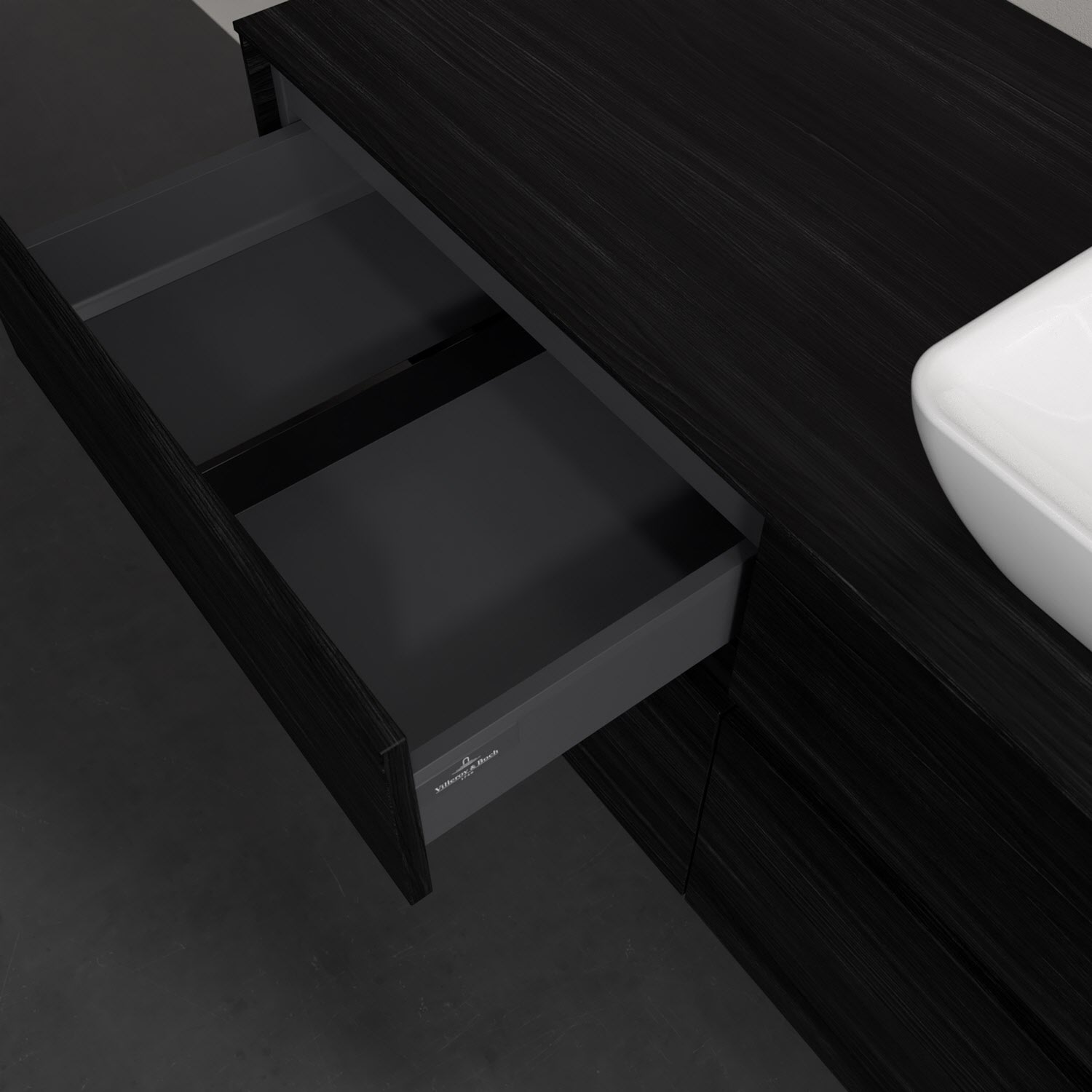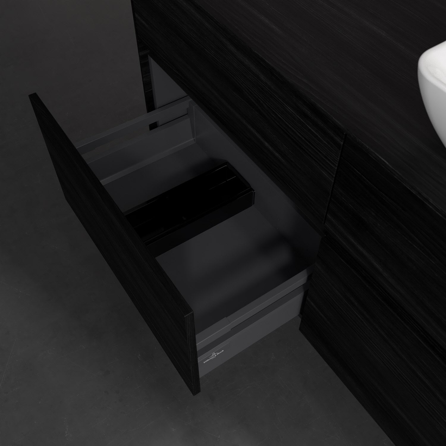 Stauraumwunder im zeitgemäßen Design: Der Villeroy & Boch Waschbeckenunterschrank aus der Collaro Kollektion eignet sich besonders für Familienbäder und bietet genau den Platz, der dort benötigt wird. Stimmungsvolles Highlight der schlichten, modernen Front ist die integrierte Griffmulde mit stufenlos einstellbarer LED-Beleuchtung. Im Inneren bietet das Möbelstück mit vier Auszügen erstaunlich viel Komfort – ermöglicht durch großzügiges Platzangebot und den integrierten Antirutschboden. Variabel setzbare Glasabtrennungen und mitgelieferte Accessory Boxen sorgen für den nötigen Überblick. Dank SoftClosing und Selbsteinzug lassen sich die Auszüge nach der Nutzung lautlos schließen. Die Front ist mit einer hochwertigen Lackierung versehen, deren Anti-Fingerprint-Oberfläche unschönen Fingerabdrücken vorbeugt.