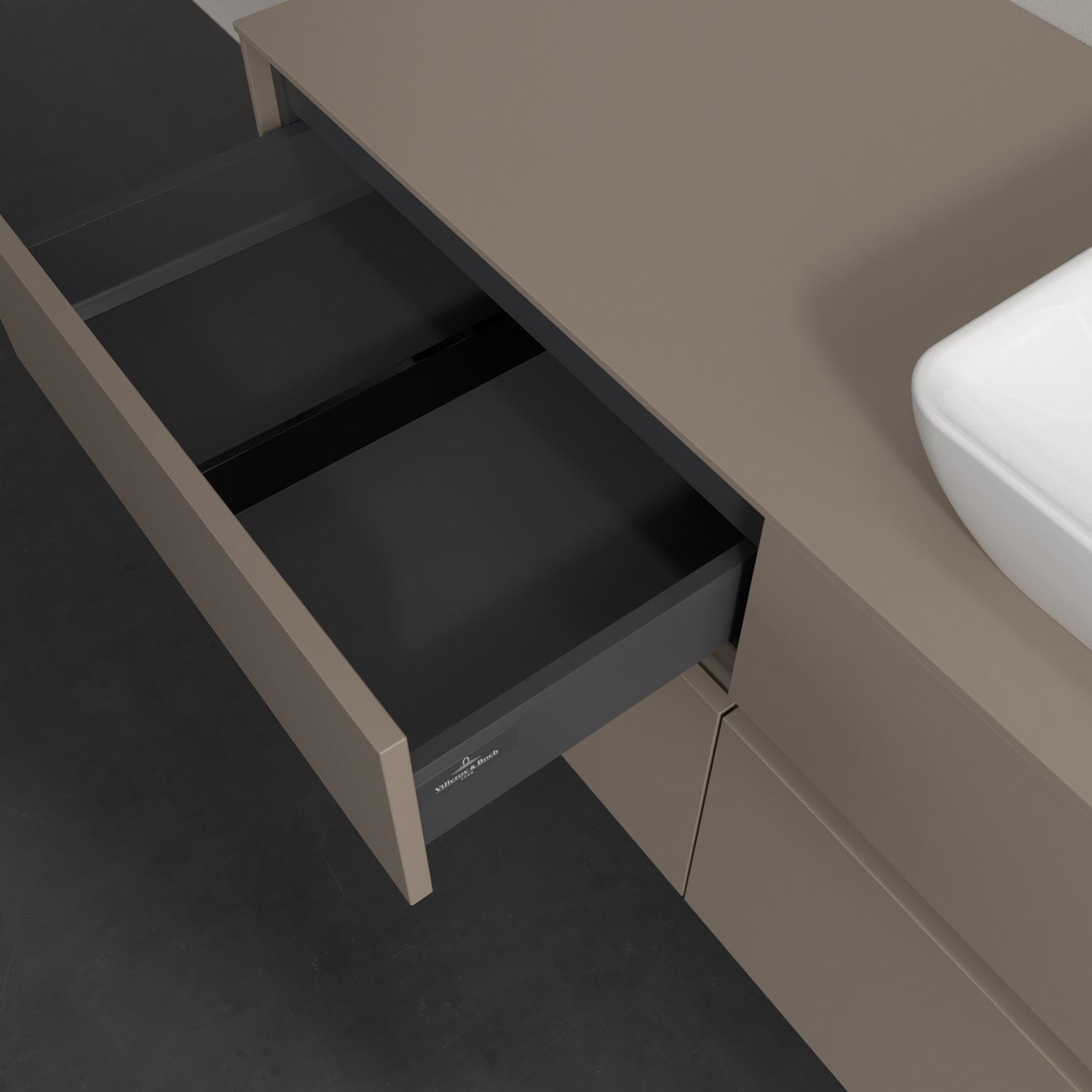 Stauraumwunder im zeitgemäßen Design: Der Villeroy & Boch Waschbeckenunterschrank aus der Collaro Kollektion eignet sich besonders für Familienbäder und bietet genau den Platz, der dort benötigt wird. Eine integrierte Griffleiste sorgt für eine schlichte, moderne Front. Steuern lässt sich das Licht über einen Touch-Sensor seitlich am Unterschrank. Im Inneren bietet das Möbelstück mit vier Auszügen erstaunlich viel Komfort – ermöglicht durch großzügiges Platzangebot und den integrierten Antirutschboden. Variabel setzbare Glasabtrennungen und mitgelieferte Accessory Boxen sorgen für den nötigen Überblick. Dank SoftClosing und Selbsteinzug lassen sich die Auszüge nach der Nutzung lautlos schließen. Die Front ist mit einer hochwertigen Lackierung versehen, deren Anti-Fingerprint-Oberfläche unschönen Fingerabdrücken vorbeugt.