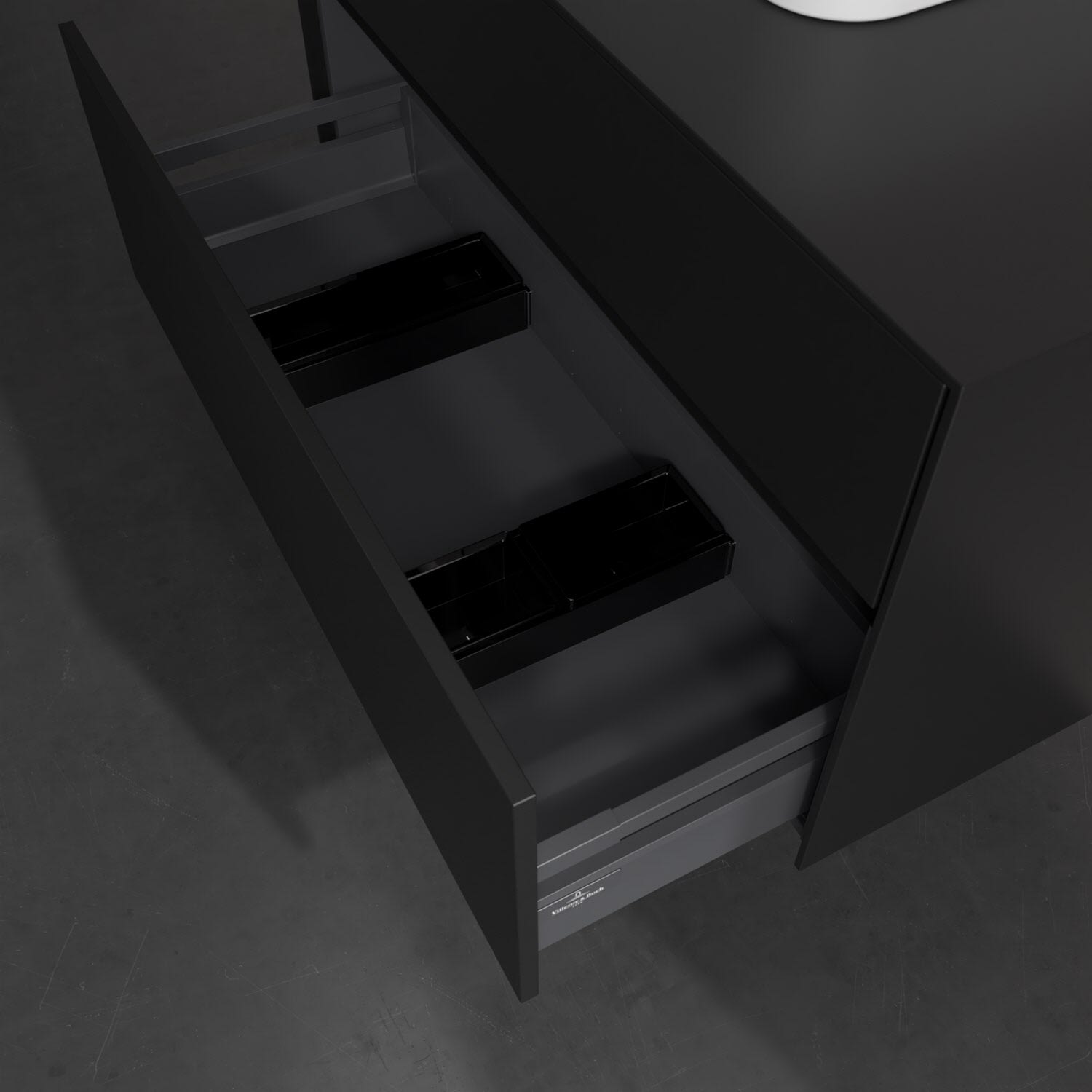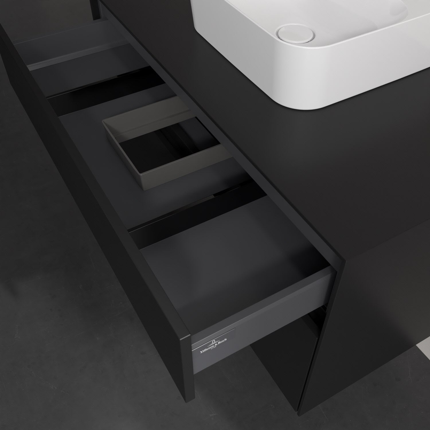 Zeitgemäßes Design und feine Linien: Der Villeroy & Boch Waschbeckenunterschrank aus der Collaro Kollektion mit zwei Auszügen glänzt mit vielen Vorzügen. Eine integrierte Griffleiste sorgt für eine schlichte, moderne Front. Im Inneren bietet das Möbelstück erstaunlich viel Komfort – ermöglicht durch großzügigen Stauraum und den integrierten Antirutschboden. Die variabel setzbaren Glasabtrennungen und die mitgelieferte Accessory Box bieten Badutensilien ausreichend Platz und sorgen für den nötigen Überblick. Dank SoftClosing und Selbsteinzug lassen sich die Auszüge nach der Nutzung lautlos schließen. Die Front ist mit einer hochwertigen Lackierung versehen, deren Anti-Fingerprint-Oberfläche unschönen Fingerabdrücken vorbeugt.