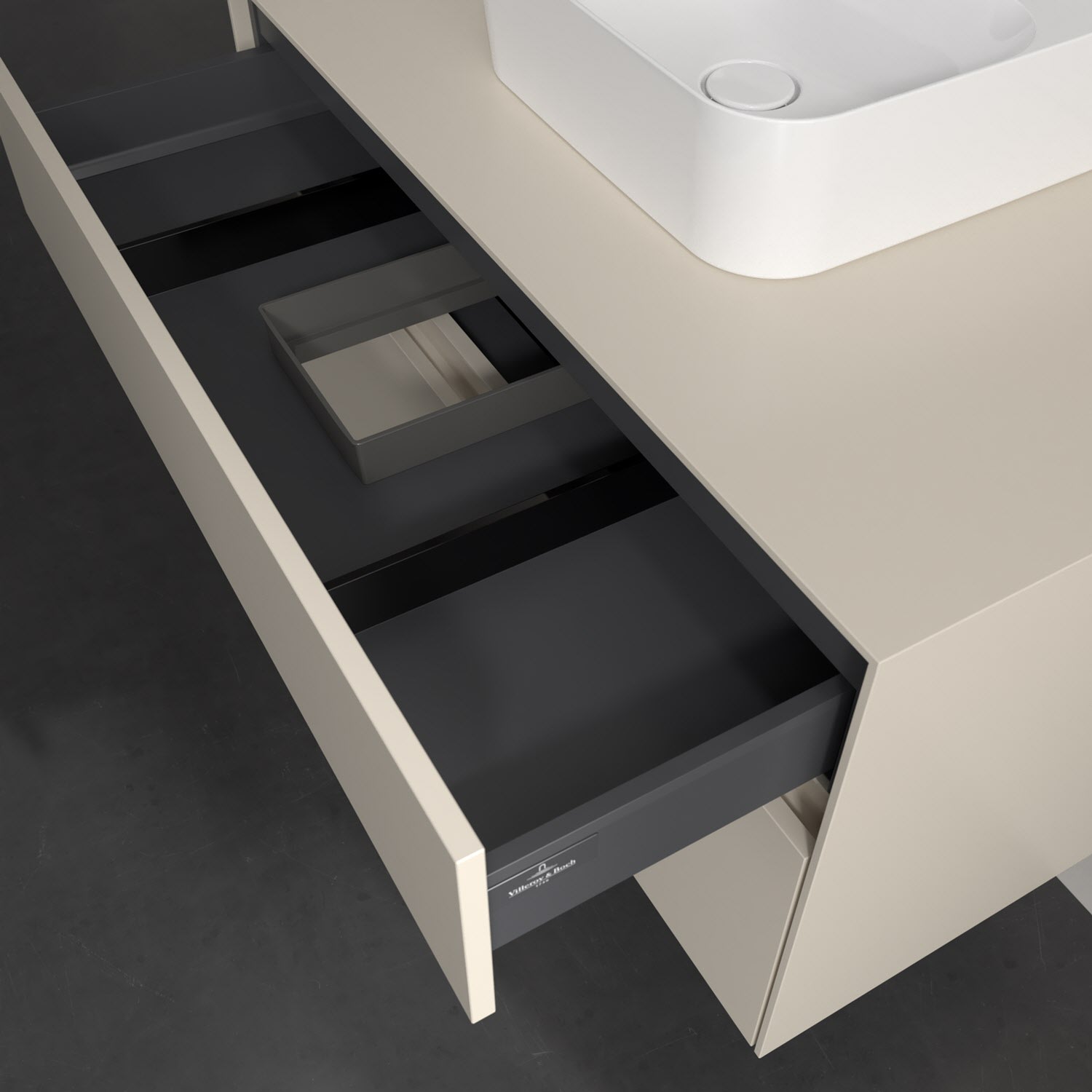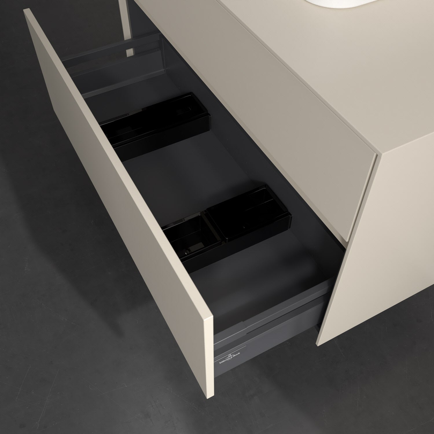 Zeitgemäßes Design und feine Linien: Der Villeroy & Boch Waschbeckenunterschrank aus der Collaro Kollektion mit zwei Auszügen glänzt mit vielen Vorzügen. Eine Griffleiste mit integrierter, stufenlos einstellbarer LED-Beleuchtung sorgt für eine schlichte, stimmungsvolle Front. Steuern lässt sich das Licht über einen Touch-Sensor seitlich am Unterschrank. Im Inneren bietet das Möbelstück erstaunlich viel Komfort – ermöglicht durch großzügigen Stauraum und den integrierten Antirutschboden. Die variabel setzbaren Glasabtrennungen und die mitgelieferte Accessory Box bieten Badutensilien ausreichend Platz und sorgen für den nötigen Überblick. Dank SoftClosing und Selbsteinzug lassen sich die Auszüge nach der Nutzung lautlos schließen. Die Front ist mit einer hochwertigen Lackierung versehen, deren Anti-Fingerprint-Oberfläche unschönen Fingerabdrücken vorbeugt.