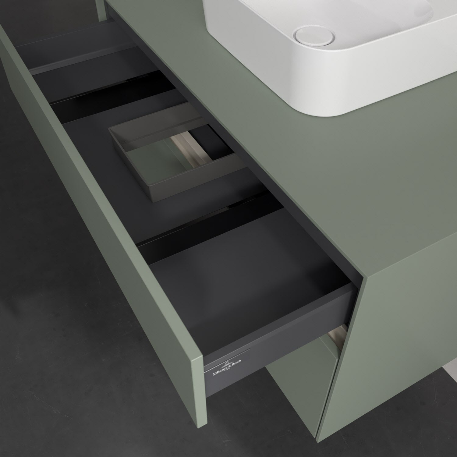 Zeitgemäßes Design und feine Linien: Der Villeroy & Boch Waschbeckenunterschrank aus der Collaro Kollektion mit zwei Auszügen glänzt mit vielen Vorzügen. Eine Griffleiste mit integrierter, stufenlos einstellbarer LED-Beleuchtung sorgt für eine schlichte, stimmungsvolle Front. Steuern lässt sich das Licht über einen Touch-Sensor seitlich am Unterschrank. Im Inneren bietet das Möbelstück erstaunlich viel Komfort – ermöglicht durch großzügigen Stauraum und den integrierten Antirutschboden. Die variabel setzbaren Glasabtrennungen und die mitgelieferte Accessory Box bieten Badutensilien ausreichend Platz und sorgen für den nötigen Überblick. Dank SoftClosing und Selbsteinzug lassen sich die Auszüge nach der Nutzung lautlos schließen. Die Front ist mit einer hochwertigen Lackierung versehen, deren Anti-Fingerprint-Oberfläche unschönen Fingerabdrücken vorbeugt.