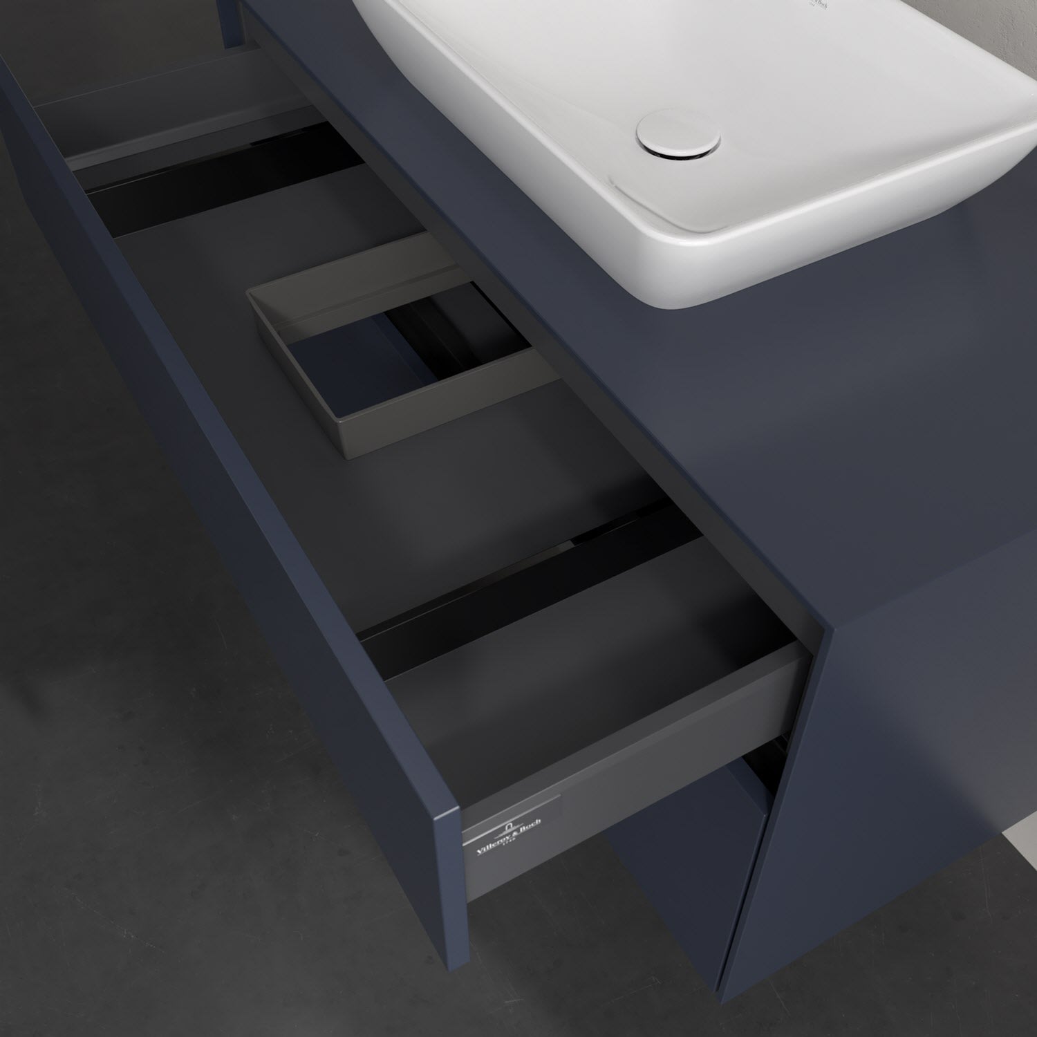 Zeitgemäßes Design und feine Linien: Der Villeroy & Boch Waschbeckenunterschrank aus der Collaro Kollektion mit zwei Auszügen glänzt mit vielen Vorzügen. Eine Griffleiste mit integrierter, stufenlos einstellbarer LED-Beleuchtung sorgt für eine schlichte, stimmungsvolle Front. Steuern lässt sich das Licht über einen Touch-Sensor seitlich am Unterschrank. Im Inneren bietet das Möbelstück erstaunlich viel Komfort – ermöglicht durch großzügigen Stauraum und den integrierten Antirutschboden. Die variabel setzbaren Glasabtrennungen und die mitgelieferte Accessory Box bieten Badutensilien ausreichend Platz und sorgen für den nötigen Überblick. Dank SoftClosing und Selbsteinzug lassen sich die Auszüge nach der Nutzung lautlos schließen. Die Front ist mit einer hochwertigen Lackierung versehen, deren Anti-Fingerprint-Oberfläche unschönen Fingerabdrücken vorbeugt.