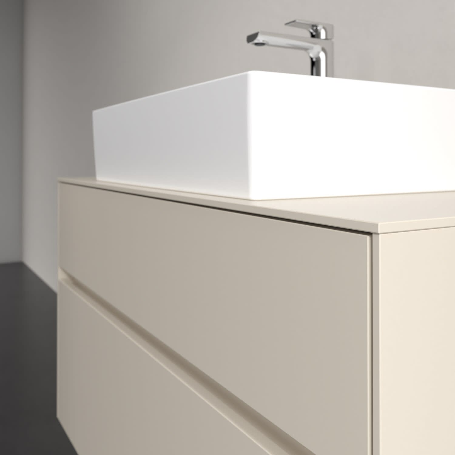 Zeitgemäßes Design und feine Linien: Der Villeroy & Boch Waschbeckenunterschrank aus der Collaro Kollektion mit zwei Auszügen glänzt mit vielen Vorzügen. Eine integrierte Griffleiste sorgt für eine schlichte, moderne Front. Im Inneren bietet das Möbelstück erstaunlich viel Komfort – ermöglicht durch großzügigen Stauraum und den integrierten Antirutschboden. Die variabel setzbaren Glasabtrennungen und die mitgelieferte Accessory Box bieten Badutensilien ausreichend Platz und sorgen für den nötigen Überblick. Dank SoftClosing und Selbsteinzug lassen sich die Auszüge nach der Nutzung lautlos schließen. Die Front ist mit einer hochwertigen Lackierung versehen, deren Anti-Fingerprint-Oberfläche unschönen Fingerabdrücken vorbeugt.