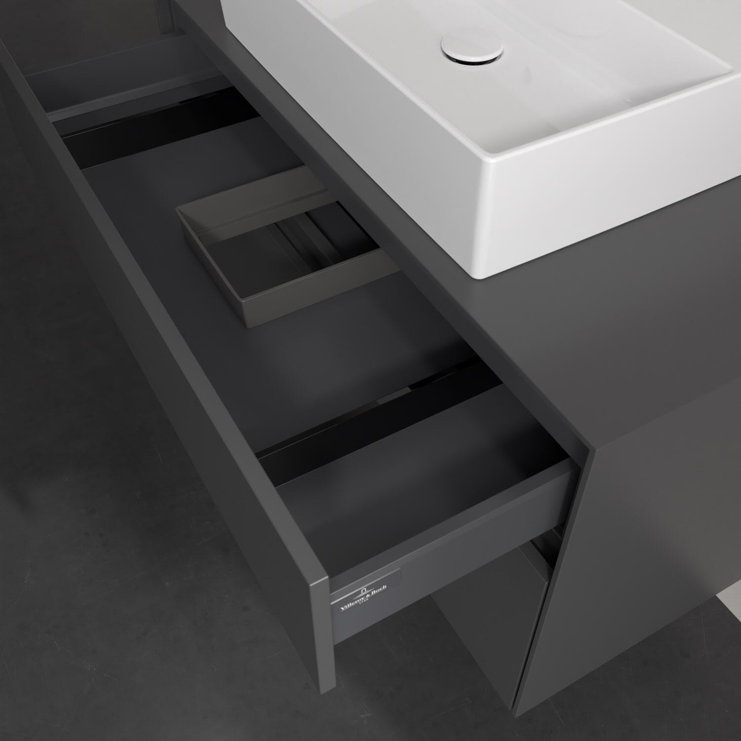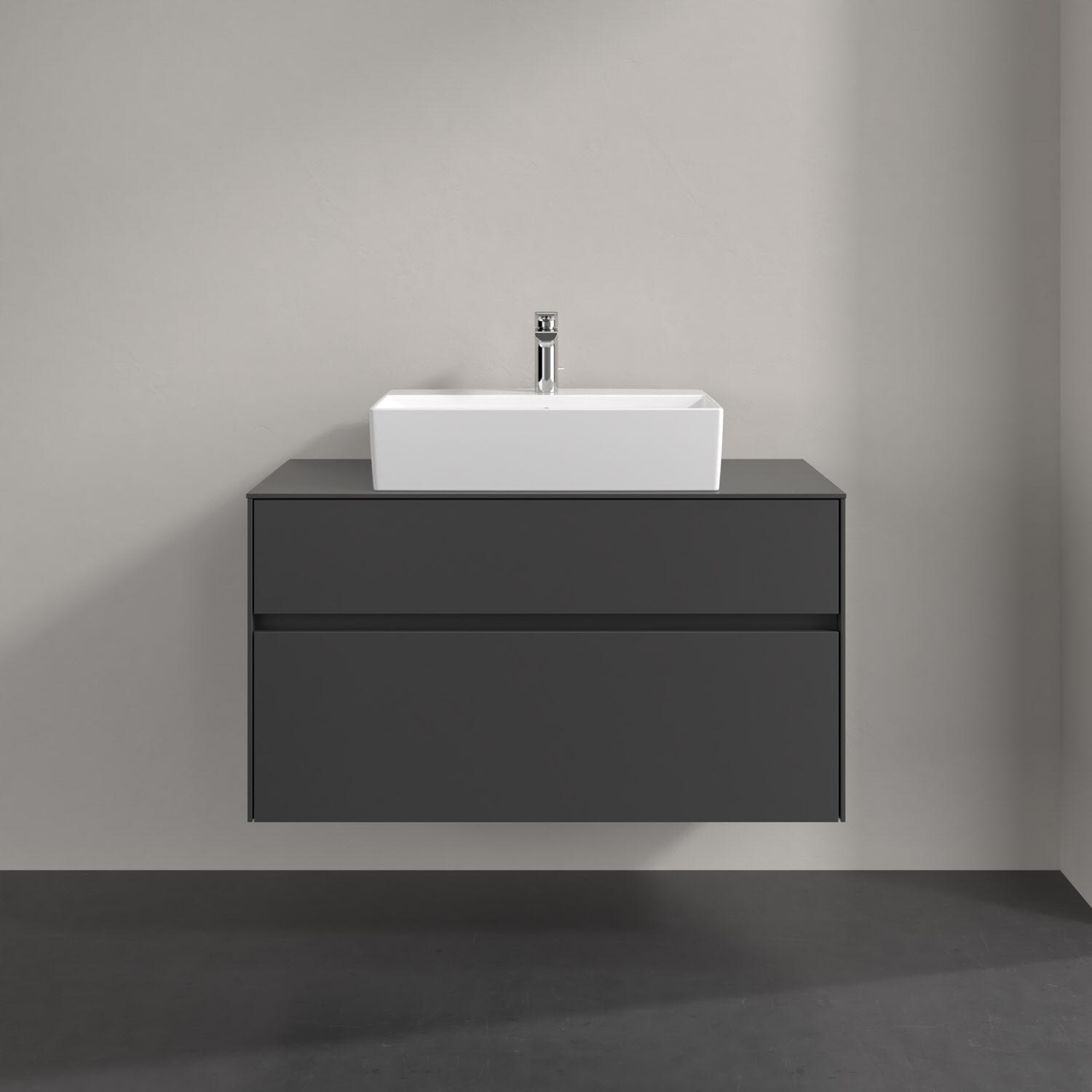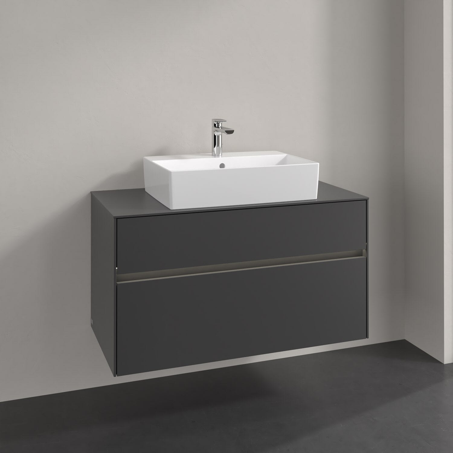 Villeroy & Boch Antao Waschbeckenunterschrank, 100 x 36 cm, 1 Auszug, Front ohne Struktur, mit Hahnloch