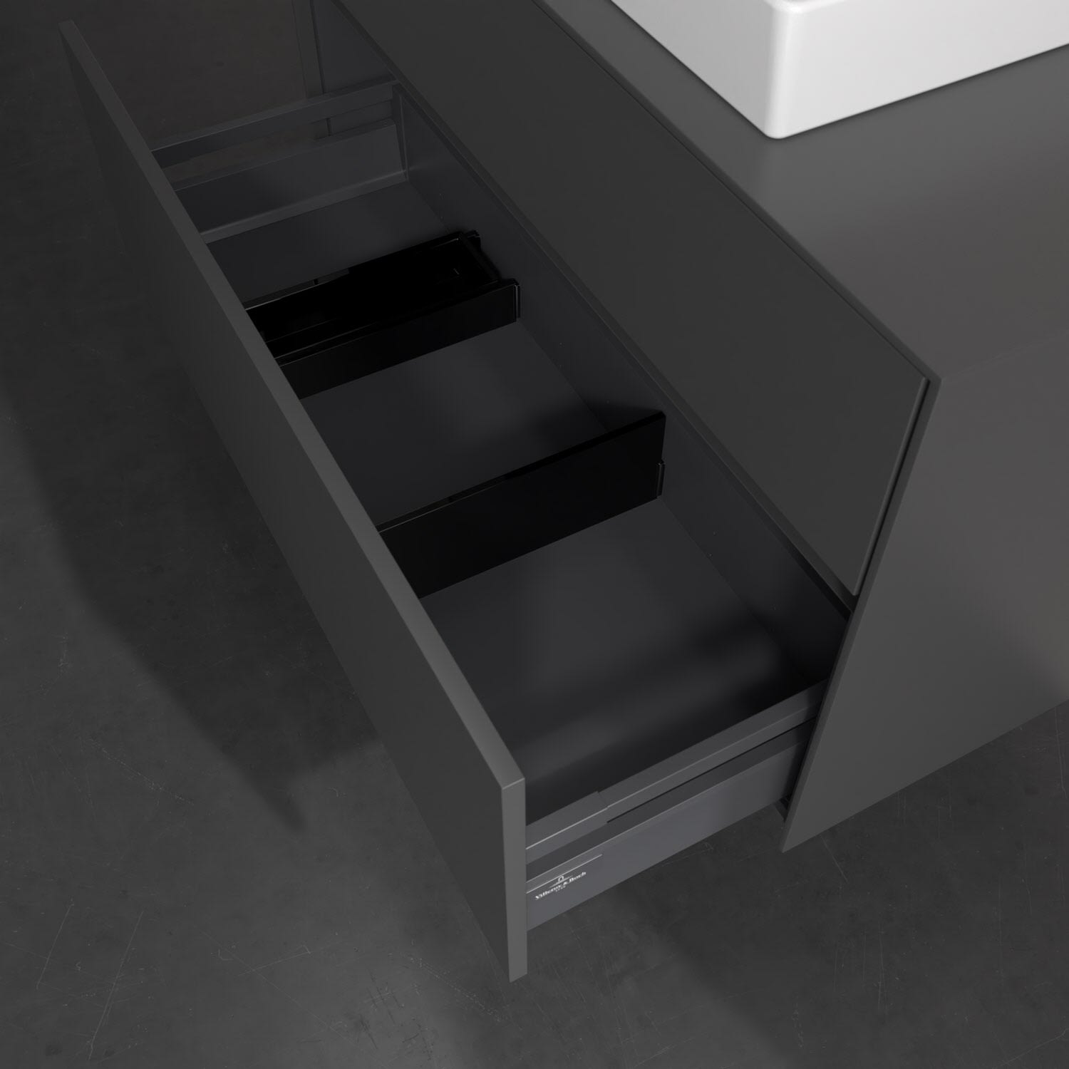- kein Umfallen oder Verrutschen von Pflegeprodukten in den Schubladen dank rutschhemmendem Boden