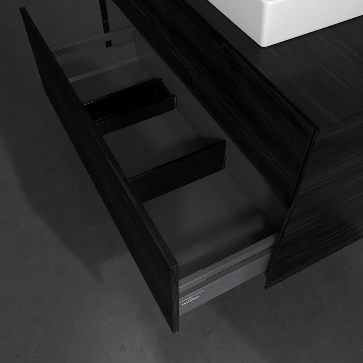 - kein Umfallen oder Verrutschen von Pflegeprodukten in den Schubladen dank rutschhemmendem Boden
