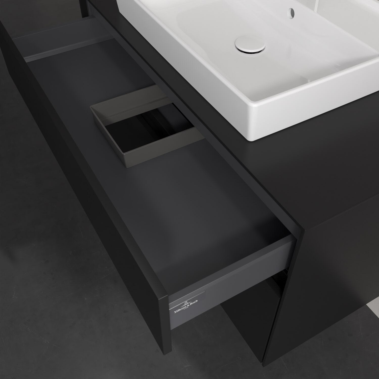 Zeitgemäßes Design und feine Linien: Der Villeroy & Boch Waschbeckenunterschrank aus der Collaro Kollektion mit zwei Auszügen glänzt mit vielen Vorzügen. Eine Griffleiste mit integrierter, stufenlos einstellbarer LED-Beleuchtung sorgt für eine schlichte, stimmungsvolle Front. Steuern lässt sich das Licht über einen Touch-Sensor seitlich am Unterschrank. Im Inneren bietet das Möbelstück erstaunlich viel Komfort – ermöglicht durch großzügigen Stauraum und den integrierten Antirutschboden. Die variabel setzbaren Glasabtrennungen und die mitgelieferte Accessory Box bieten Badutensilien ausreichend Platz und sorgen für den nötigen Überblick. Dank SoftClosing und Selbsteinzug lassen sich die Auszüge nach der Nutzung lautlos schließen. Die Front ist mit einer hochwertigen Lackierung versehen, deren Anti-Fingerprint-Oberfläche unschönen Fingerabdrücken vorbeugt.
