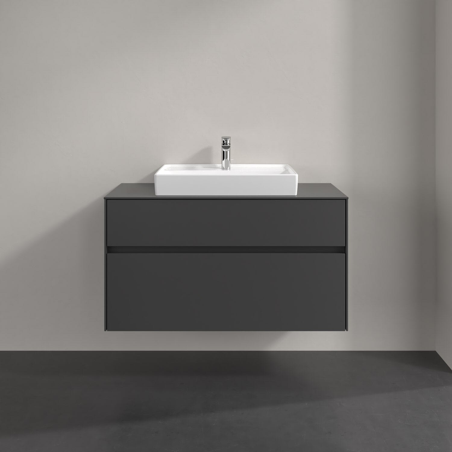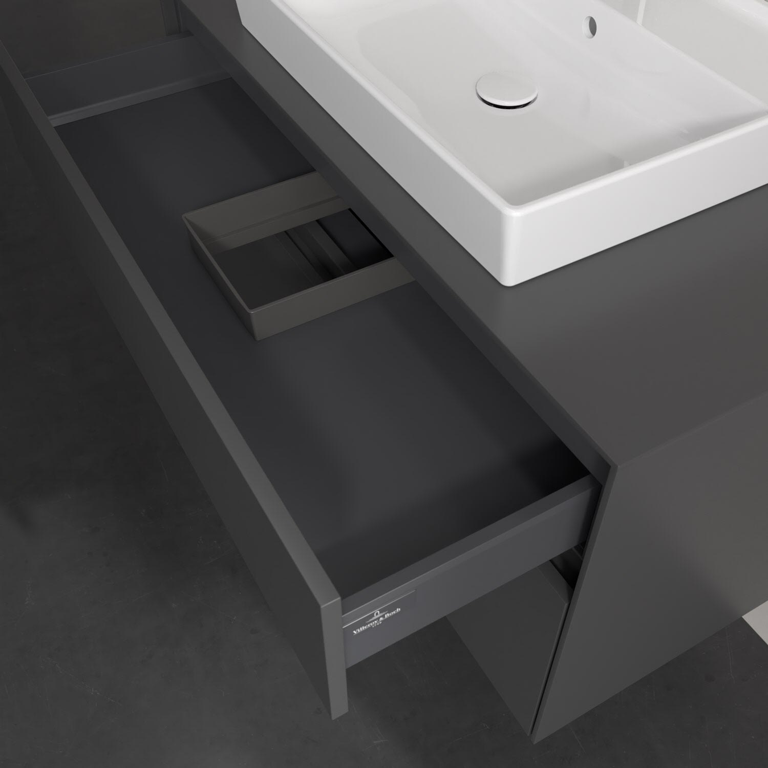 Villeroy & Boch Antao Waschbeckenunterschrank, 100 x 36 cm, 1 Auszug, Front ohne Struktur, mit Hahnloch