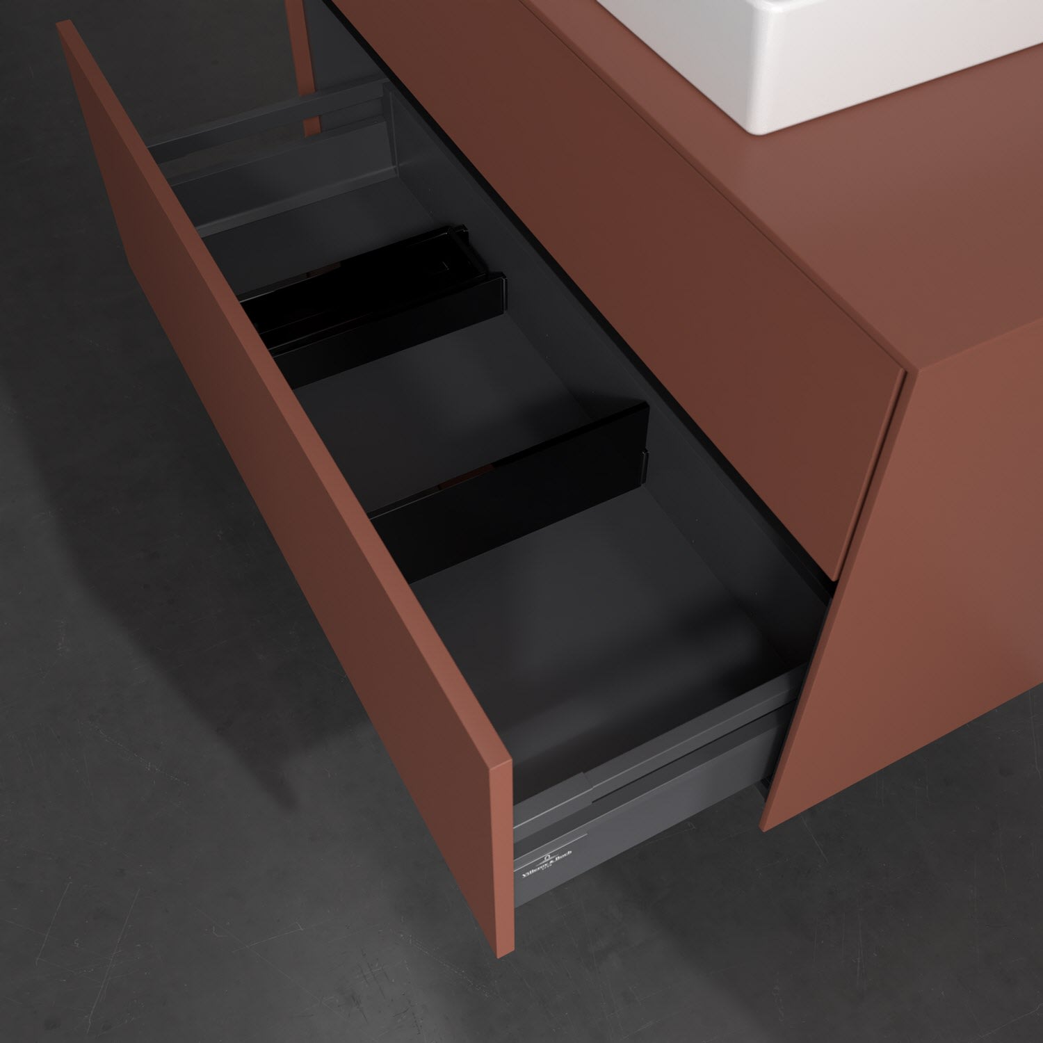 - kein Umfallen oder Verrutschen von Pflegeprodukten in den Schubladen dank rutschhemmendem Boden