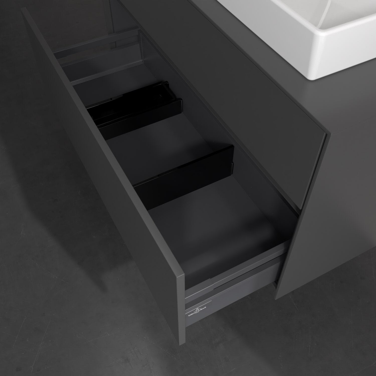 - kein Umfallen oder Verrutschen von Pflegeprodukten in den Schubladen dank rutschhemmendem Boden
