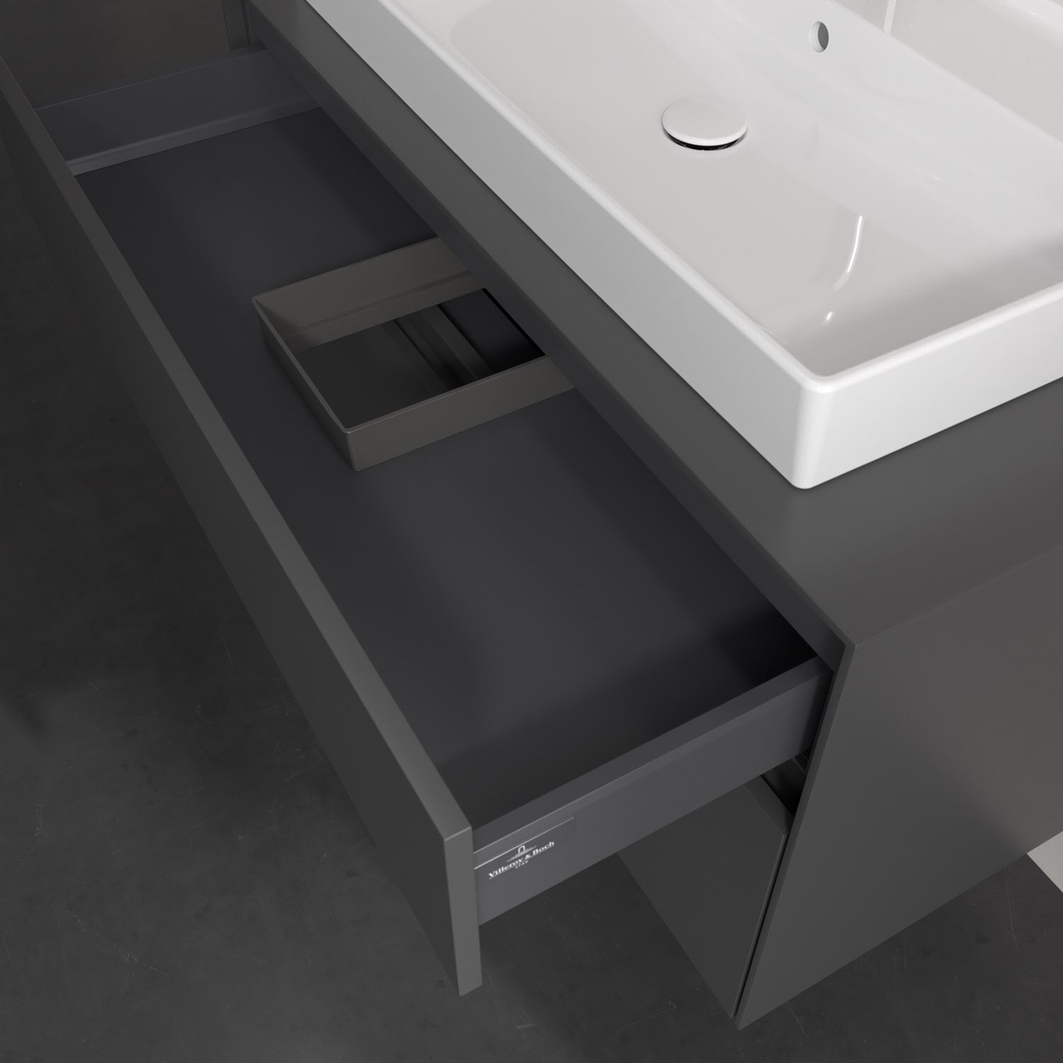 Villeroy & Boch Antao Waschbeckenunterschrank, 100 x 36 cm, 1 Auszug, Front ohne Struktur, mit Hahnloch
