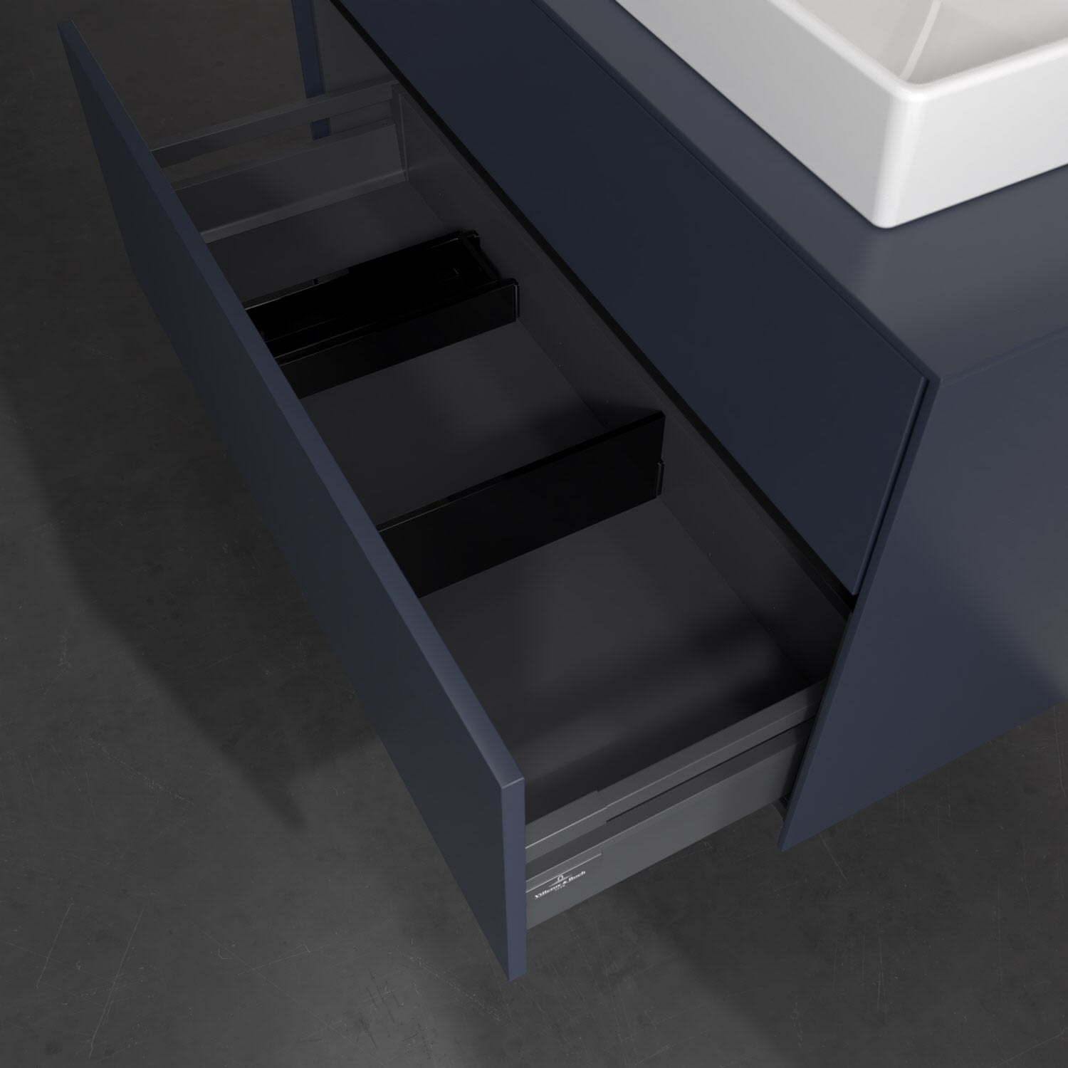 Zeitgemäßes Design und feine Linien: Der Villeroy & Boch Waschbeckenunterschrank aus der Collaro Kollektion mit zwei Auszügen glänzt mit vielen Vorzügen. Eine Griffleiste mit integrierter, stufenlos einstellbarer LED-Beleuchtung sorgt für eine schlichte, stimmungsvolle Front. Steuern lässt sich das Licht über einen Touch-Sensor seitlich am Unterschrank. Im Inneren bietet das Möbelstück erstaunlich viel Komfort – ermöglicht durch großzügigen Stauraum und den integrierten Antirutschboden. Die variabel setzbaren Glasabtrennungen und die mitgelieferte Accessory Box bieten Badutensilien ausreichend Platz und sorgen für den nötigen Überblick. Dank SoftClosing und Selbsteinzug lassen sich die Auszüge nach der Nutzung lautlos schließen. Die Front ist mit einer hochwertigen Lackierung versehen, deren Anti-Fingerprint-Oberfläche unschönen Fingerabdrücken vorbeugt.