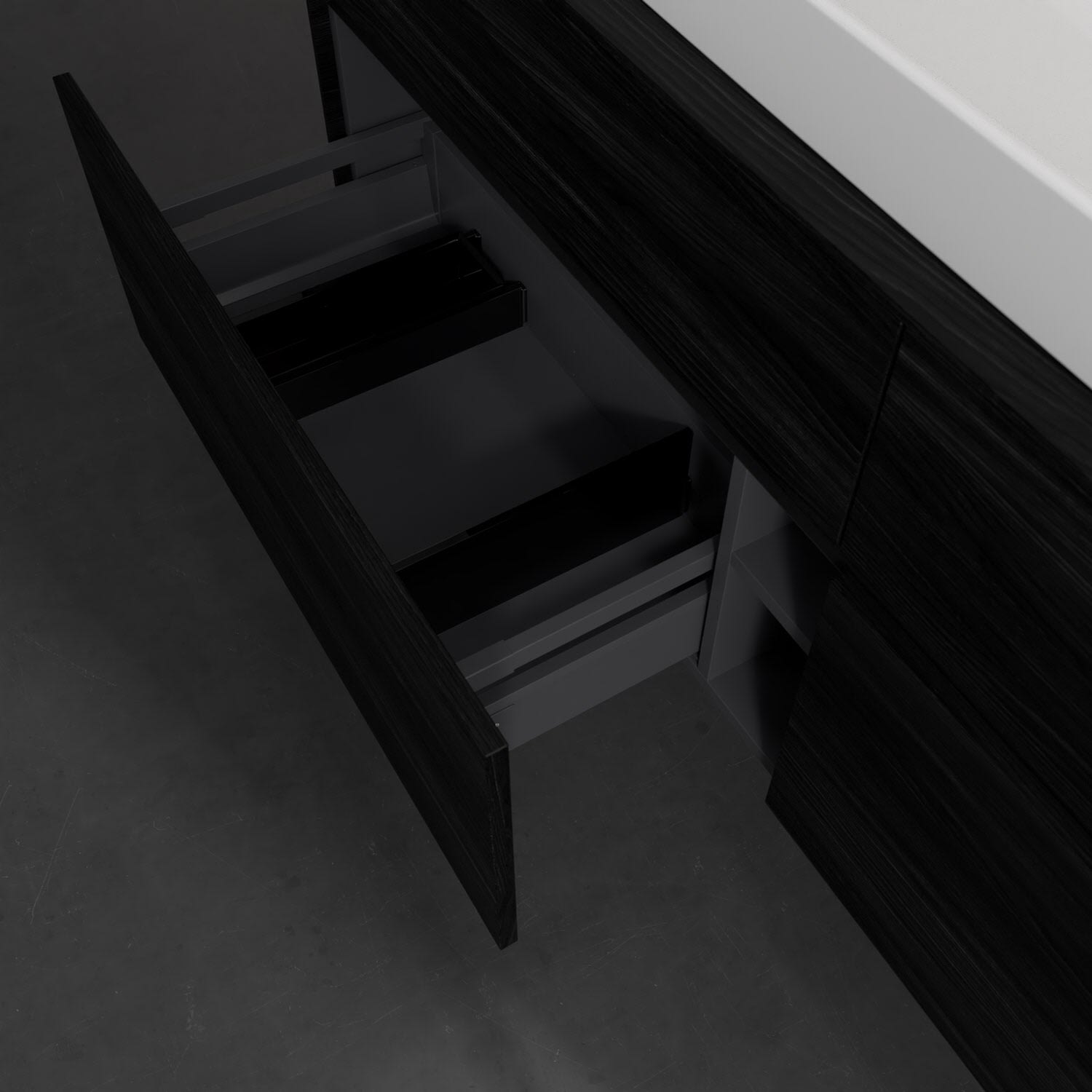 - kein Umfallen oder Verrutschen von Pflegeprodukten in den Schubladen dank rutschhemmendem Boden