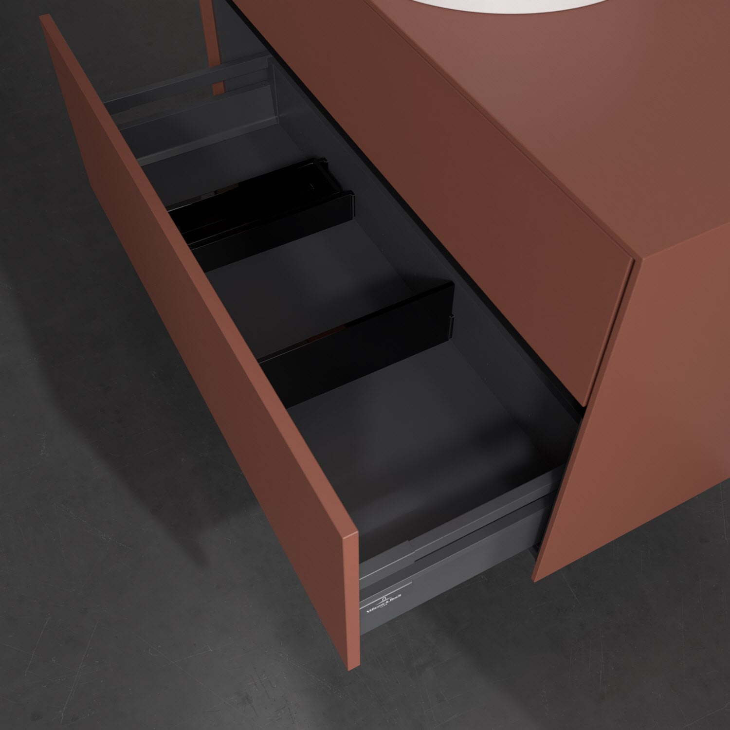 - kein Umfallen oder Verrutschen von Pflegeprodukten in den Schubladen dank rutschhemmendem Boden