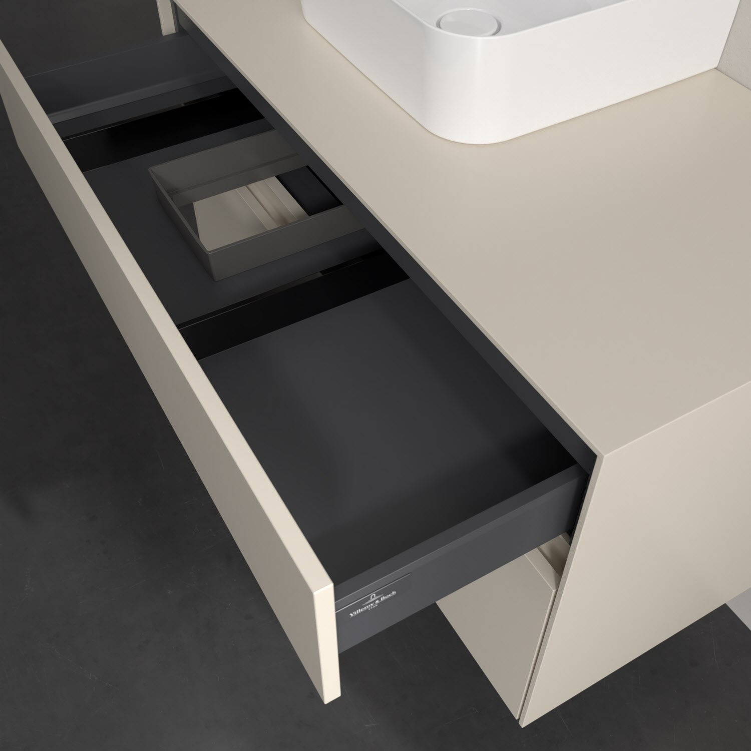 Zeitgemäßes Design und feine Linien: Der Villeroy & Boch Waschbeckenunterschrank aus der Collaro Kollektion mit zwei Auszügen glänzt mit vielen Vorzügen. Eine integrierte Griffleiste sorgt für eine schlichte, moderne Front. Im Inneren bietet das Möbelstück erstaunlich viel Komfort – ermöglicht durch großzügigen Stauraum und den integrierten Antirutschboden. Die variabel setzbaren Glasabtrennungen und die mitgelieferte Accessory Box bieten Badutensilien ausreichend Platz und sorgen für den nötigen Überblick. Dank SoftClosing und Selbsteinzug lassen sich die Auszüge nach der Nutzung lautlos schließen. Die Front ist mit einer hochwertigen Lackierung versehen, deren Anti-Fingerprint-Oberfläche unschönen Fingerabdrücken vorbeugt.