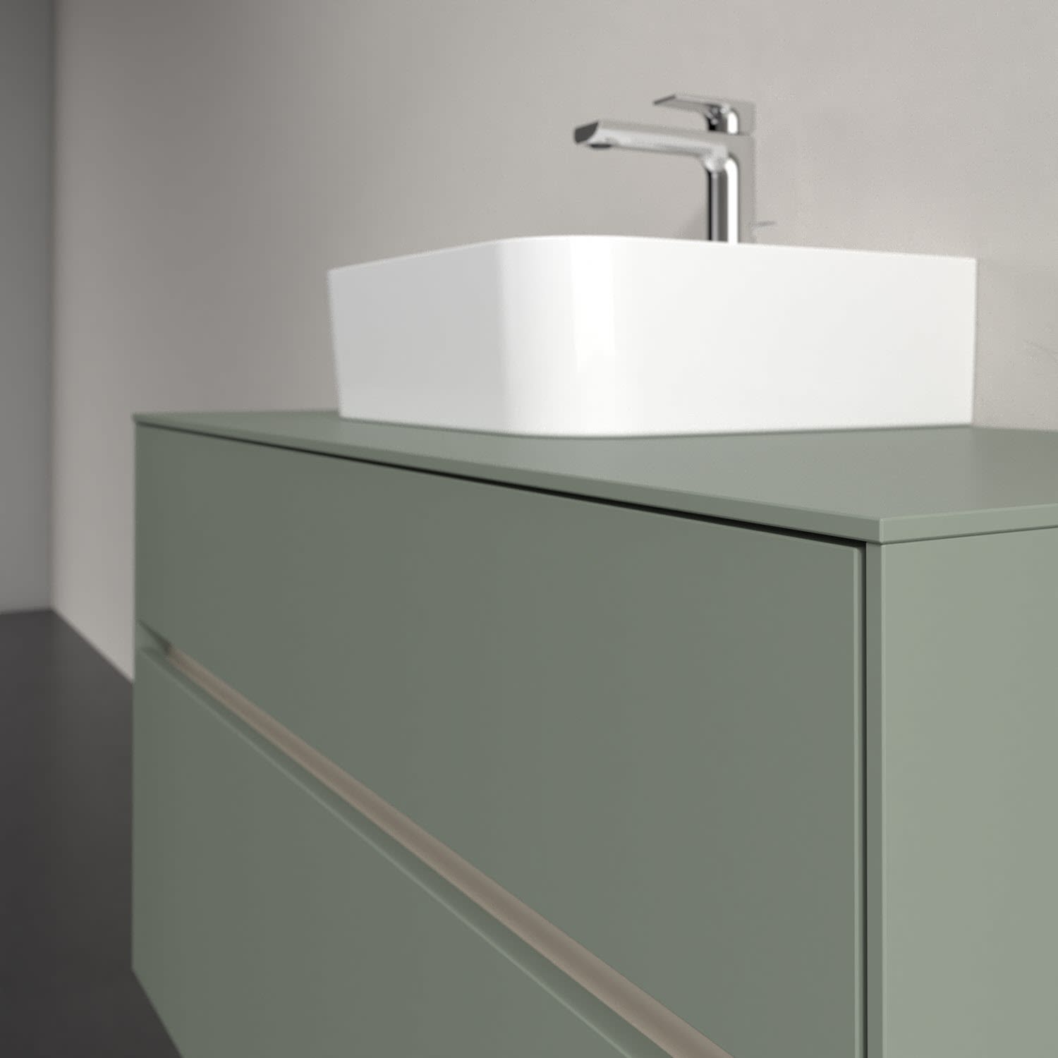 Zeitgemäßes Design und feine Linien: Der Villeroy & Boch Waschbeckenunterschrank aus der Collaro Kollektion mit zwei Auszügen glänzt mit vielen Vorzügen. Eine integrierte Griffleiste sorgt für eine schlichte, moderne Front. Im Inneren bietet das Möbelstück erstaunlich viel Komfort – ermöglicht durch großzügigen Stauraum und den integrierten Antirutschboden. Die variabel setzbaren Glasabtrennungen und die mitgelieferte Accessory Box bieten Badutensilien ausreichend Platz und sorgen für den nötigen Überblick. Dank SoftClosing und Selbsteinzug lassen sich die Auszüge nach der Nutzung lautlos schließen. Die Front ist mit einer hochwertigen Lackierung versehen, deren Anti-Fingerprint-Oberfläche unschönen Fingerabdrücken vorbeugt.
