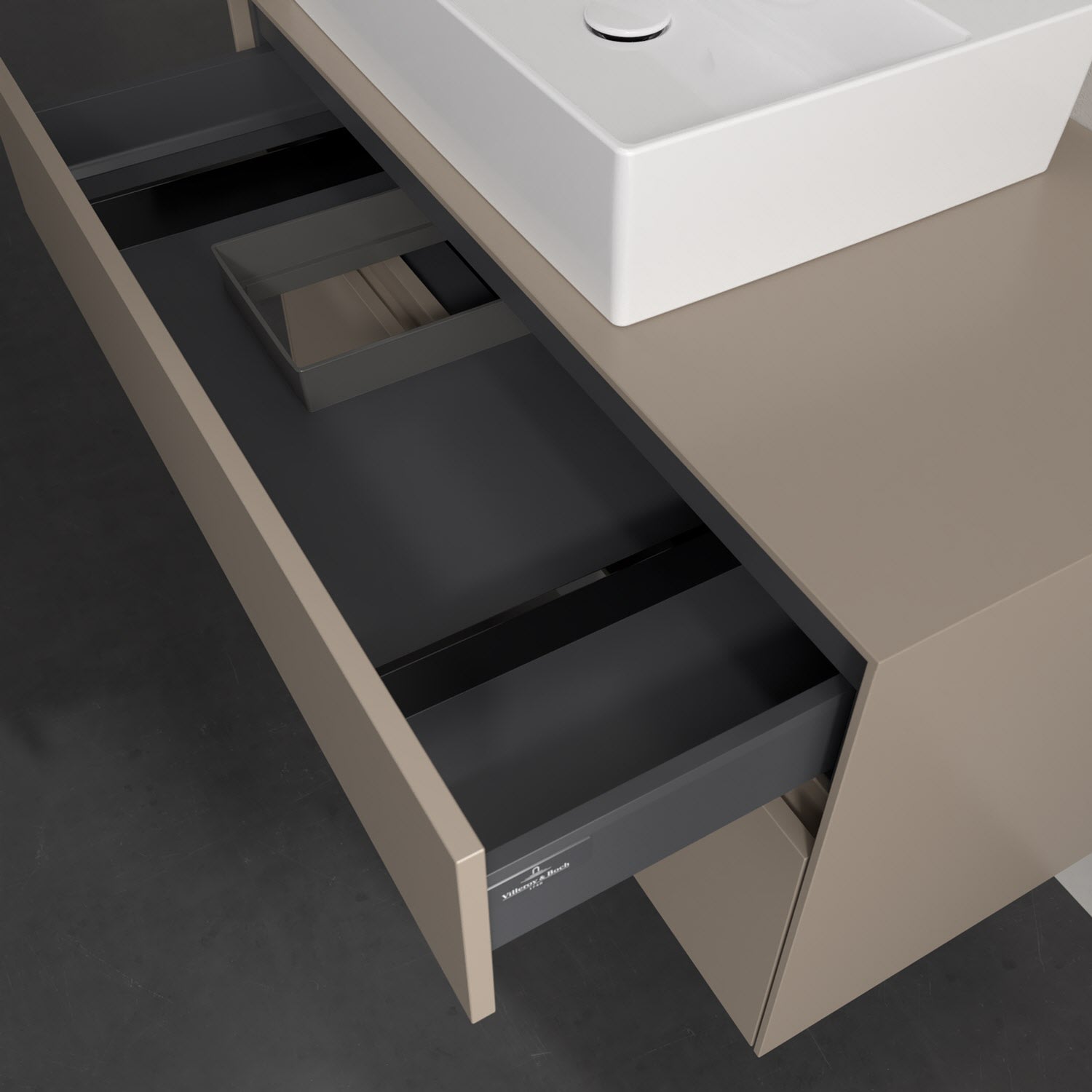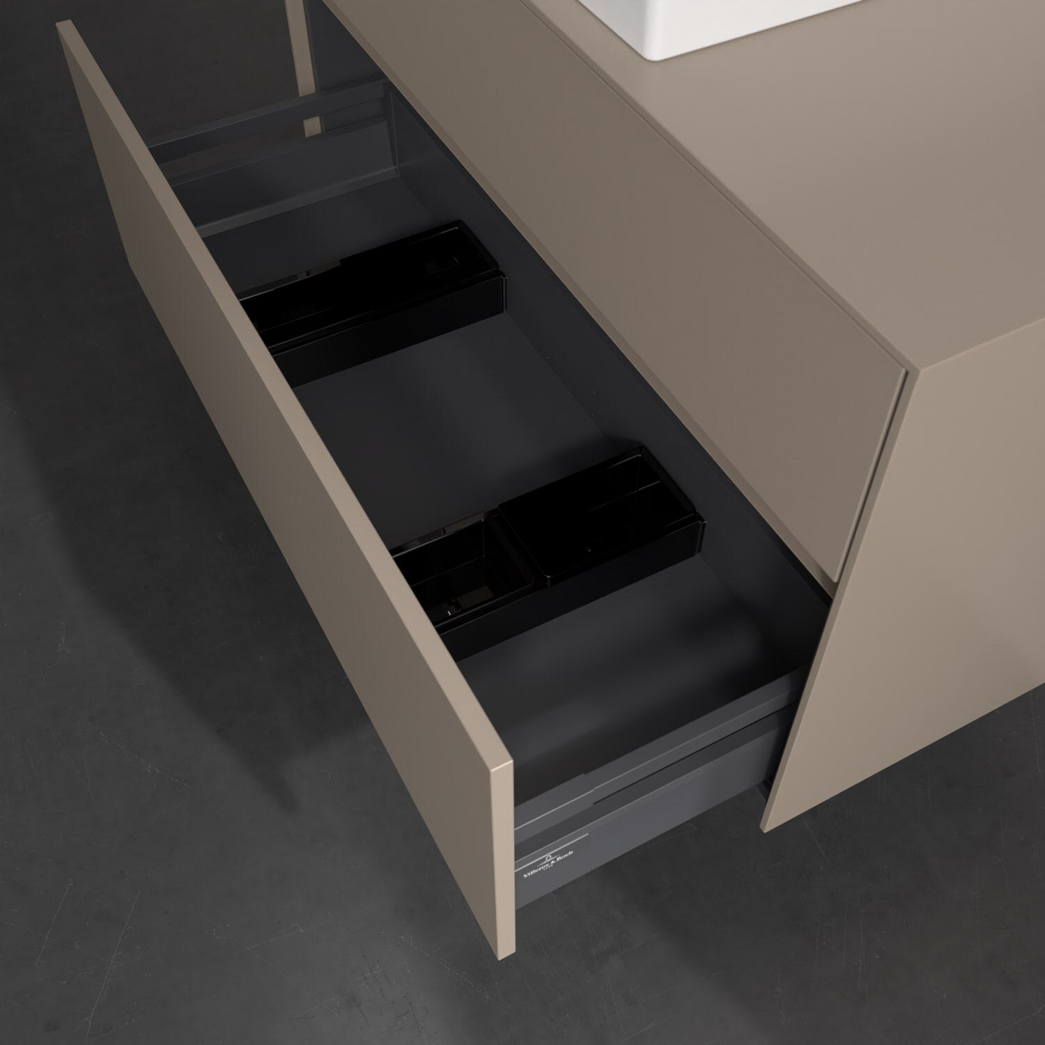 Zeitgemäßes Design und feine Linien: Der Villeroy & Boch Waschbeckenunterschrank aus der Collaro Kollektion mit zwei Auszügen glänzt mit vielen Vorzügen. Eine Griffleiste mit integrierter, stufenlos einstellbarer LED-Beleuchtung sorgt für eine schlichte, stimmungsvolle Front. Steuern lässt sich das Licht über einen Touch-Sensor seitlich am Unterschrank. Im Inneren bietet das Möbelstück erstaunlich viel Komfort – ermöglicht durch großzügigen Stauraum und den integrierten Antirutschboden. Die variabel setzbaren Glasabtrennungen und die mitgelieferte Accessory Box bieten Badutensilien ausreichend Platz und sorgen für den nötigen Überblick. Dank SoftClosing und Selbsteinzug lassen sich die Auszüge nach der Nutzung lautlos schließen. Die Front ist mit einer hochwertigen Lackierung versehen, deren Anti-Fingerprint-Oberfläche unschönen Fingerabdrücken vorbeugt.