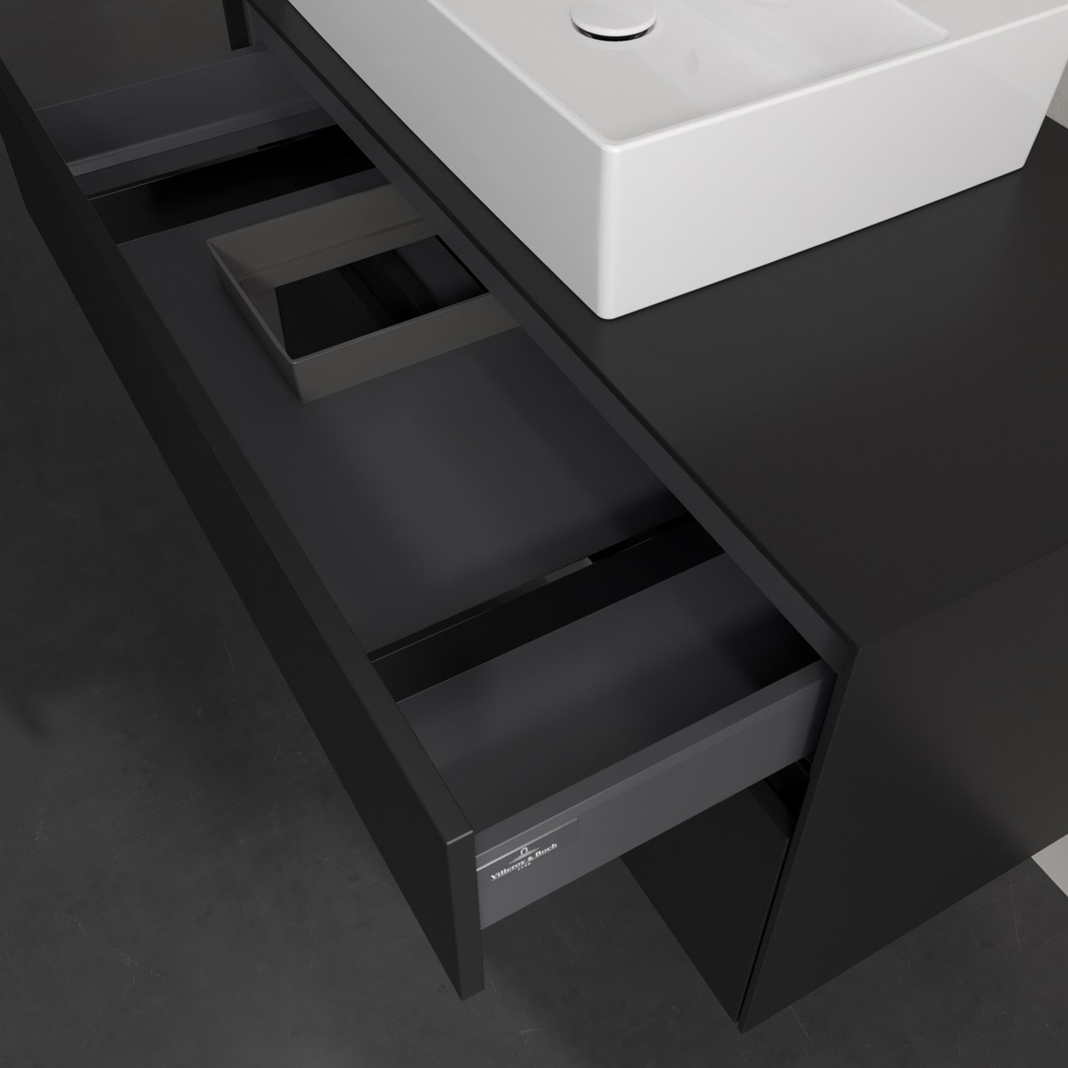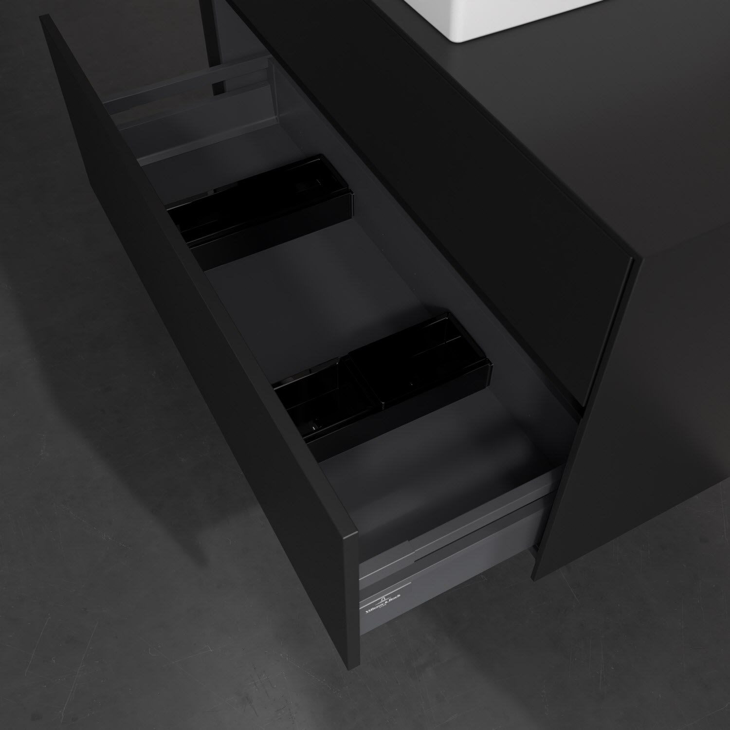 Zeitgemäßes Design und feine Linien: Der Villeroy & Boch Waschbeckenunterschrank aus der Collaro Kollektion mit zwei Auszügen glänzt mit vielen Vorzügen. Eine Griffleiste mit integrierter, stufenlos einstellbarer LED-Beleuchtung sorgt für eine schlichte, stimmungsvolle Front. Steuern lässt sich das Licht über einen Touch-Sensor seitlich am Unterschrank. Im Inneren bietet das Möbelstück erstaunlich viel Komfort – ermöglicht durch großzügigen Stauraum und den integrierten Antirutschboden. Die variabel setzbaren Glasabtrennungen und die mitgelieferte Accessory Box bieten Badutensilien ausreichend Platz und sorgen für den nötigen Überblick. Dank SoftClosing und Selbsteinzug lassen sich die Auszüge nach der Nutzung lautlos schließen. Die Front ist mit einer hochwertigen Lackierung versehen, deren Anti-Fingerprint-Oberfläche unschönen Fingerabdrücken vorbeugt.