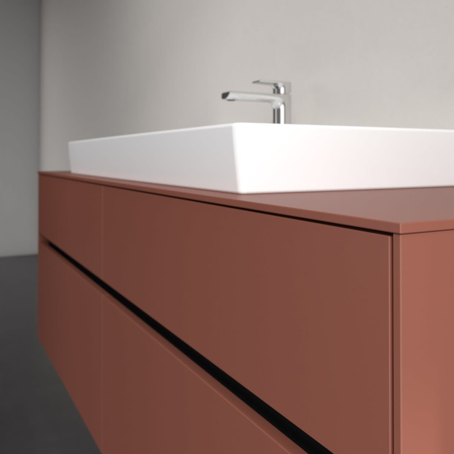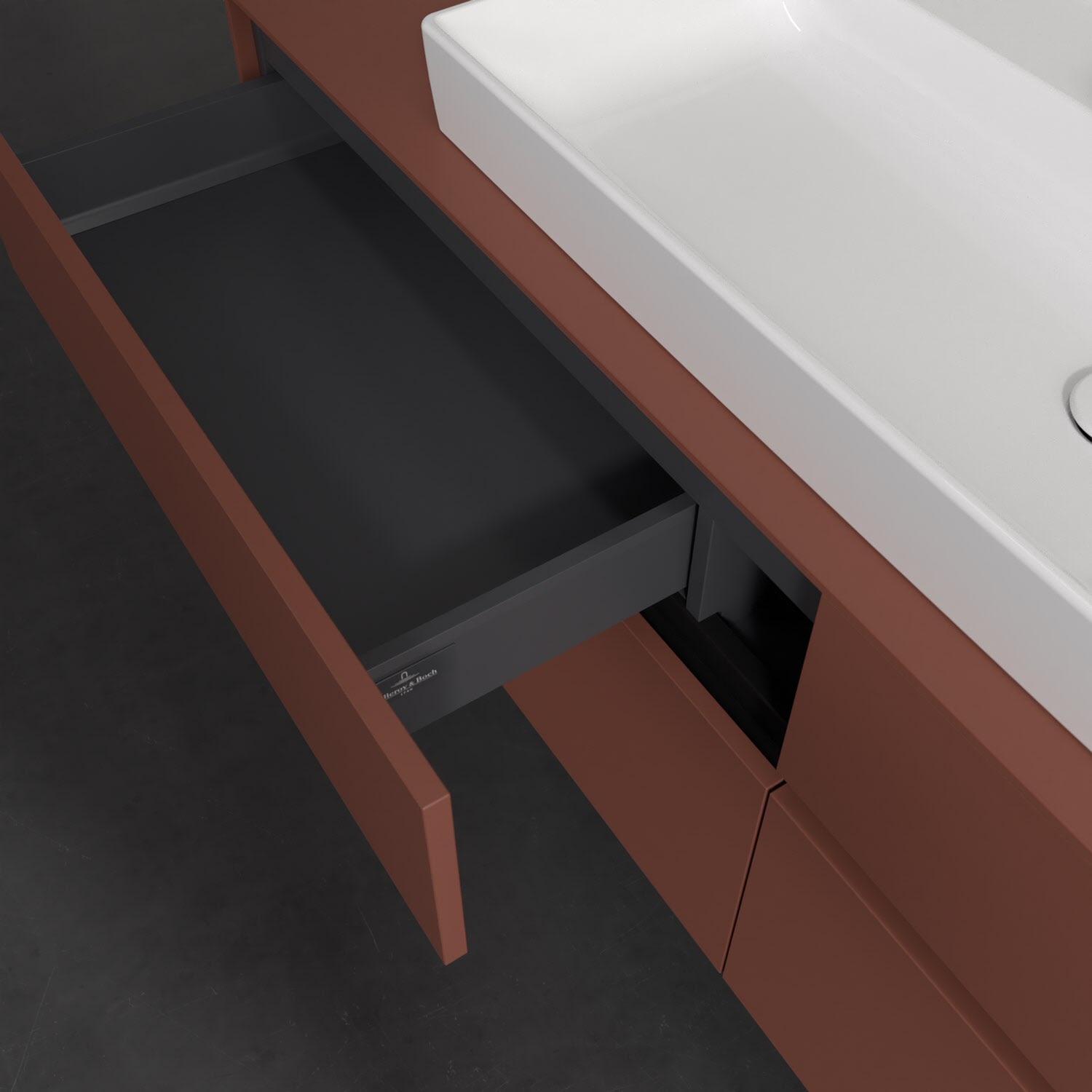 Stauraumwunder im zeitgemäßen Design: Der Villeroy & Boch Waschbeckenunterschrank aus der Collaro Kollektion eignet sich besonders für Familienbäder und bietet genau den Platz, der dort benötigt wird. Stimmungsvolles Highlight der schlichten, modernen Front ist die integrierte Griffmulde mit stufenlos einstellbarer LED-Beleuchtung. Steuern lässt sie sich über einen Touch-Sensor seitlich am Unterschrank. Im Inneren bietet das Möbelstück mit vier Auszügen erstaunlich viel Komfort – ermöglicht durch großzügiges Platzangebot und den integrierten Antirutschboden. Variabel setzbare Glasabtrennungen und mitgelieferte Accessory Boxen sorgen für den nötigen Überblick. Dank SoftClosing und Selbsteinzug lassen sich die Auszüge nach der Nutzung lautlos schließen. Die Front ist mit einer hochwertigen Lackierung versehen, deren Anti-Fingerprint-Oberfläche unschönen Fingerabdrücken vorbeugt.