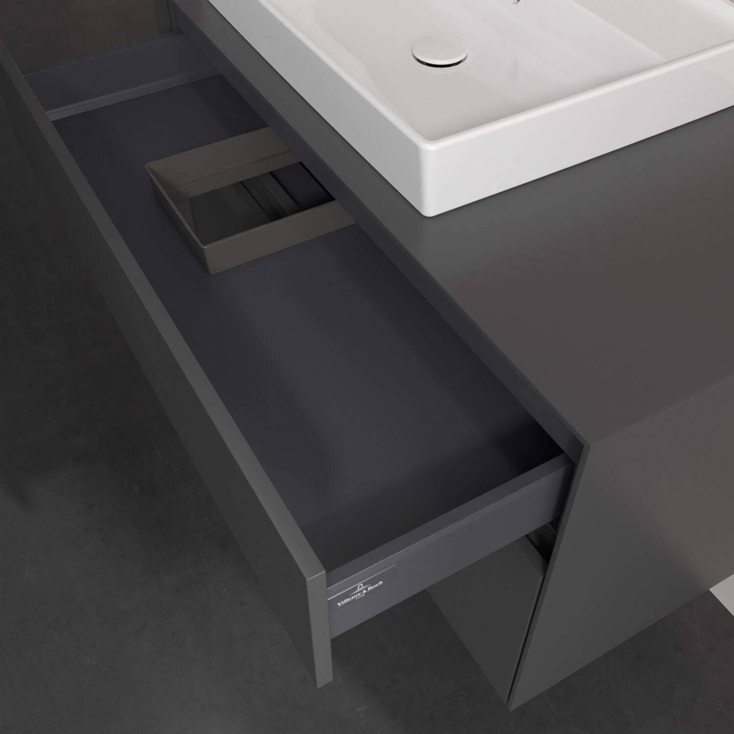 Zeitgemäßes Design und feine Linien: Der Villeroy & Boch Waschbeckenunterschrank aus der Collaro Kollektion mit zwei Auszügen glänzt mit vielen Vorzügen. Eine Griffleiste mit integrierter, stufenlos einstellbarer LED-Beleuchtung sorgt für eine schlichte, stimmungsvolle Front. Steuern lässt sich das Licht über einen Touch-Sensor seitlich am Unterschrank. Im Inneren bietet das Möbelstück erstaunlich viel Komfort – ermöglicht durch großzügigen Stauraum und den integrierten Antirutschboden. Die variabel setzbaren Glasabtrennungen und die mitgelieferte Accessory Box bieten Badutensilien ausreichend Platz und sorgen für den nötigen Überblick. Dank SoftClosing und Selbsteinzug lassen sich die Auszüge nach der Nutzung lautlos schließen. Die Front ist mit einer hochwertigen Lackierung versehen, deren Anti-Fingerprint-Oberfläche unschönen Fingerabdrücken vorbeugt.
