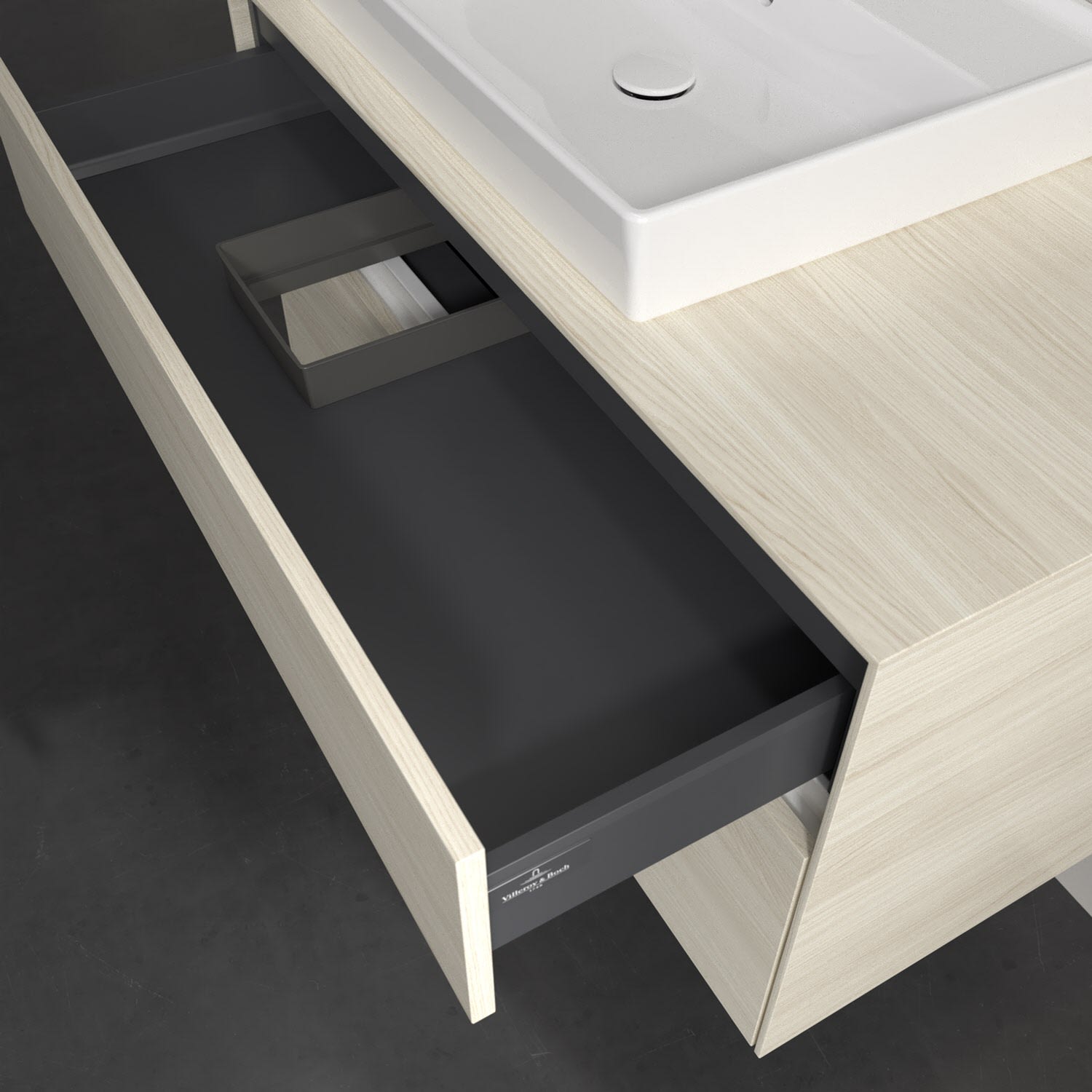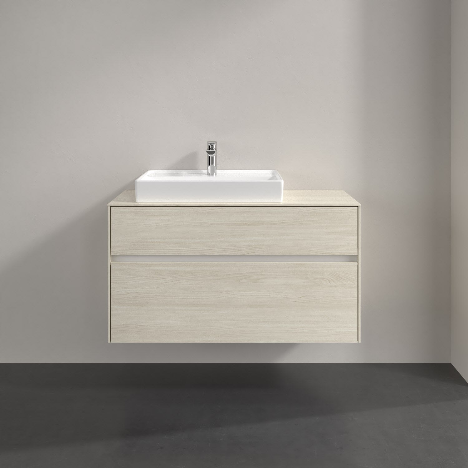 Villeroy & Boch Antao Waschbeckenunterschrank, 100 x 36 cm, 1 Auszug, Front ohne Struktur, mit Hahnloch