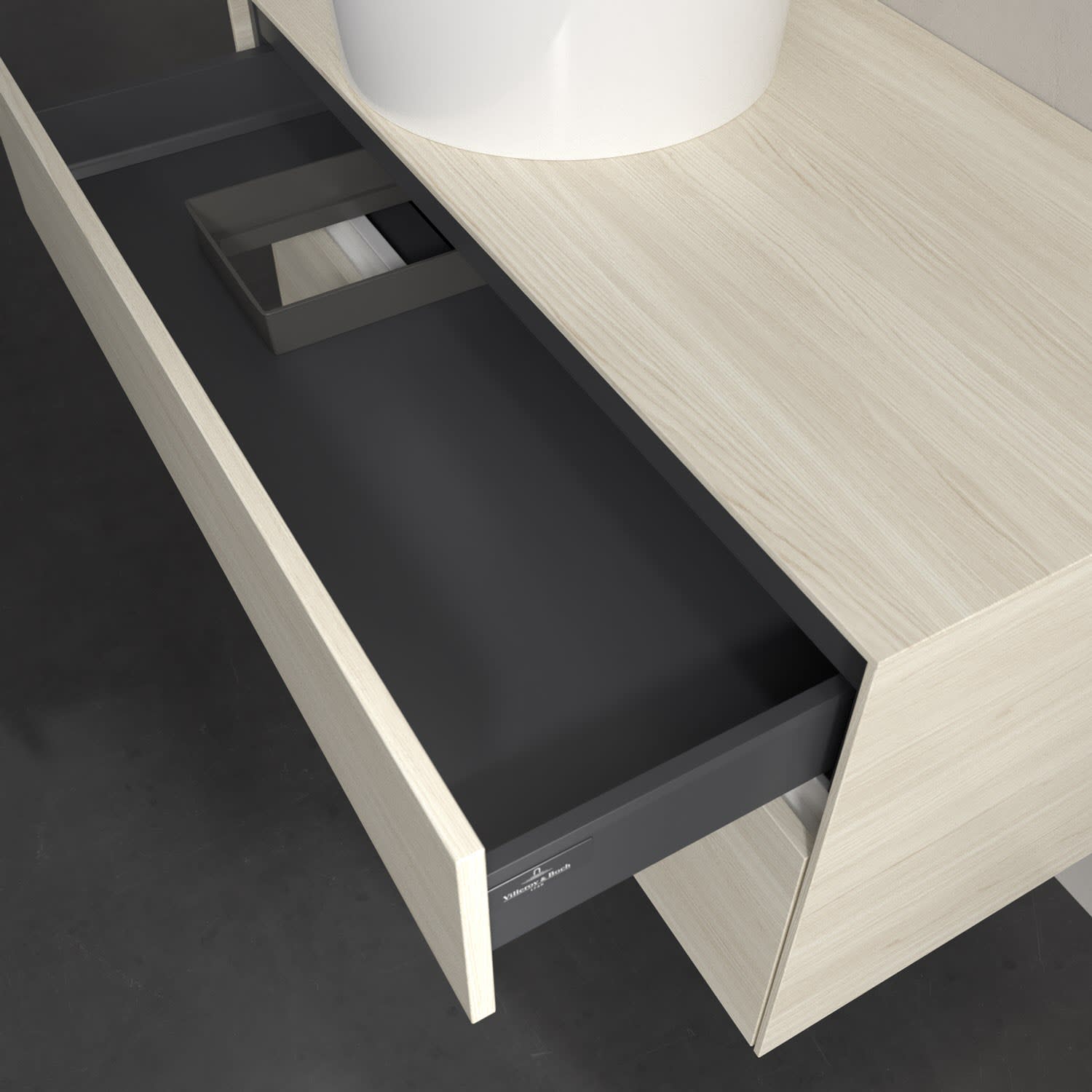 - kein Umfallen oder Verrutschen von Pflegeprodukten in den Schubladen dank rutschhemmendem Boden