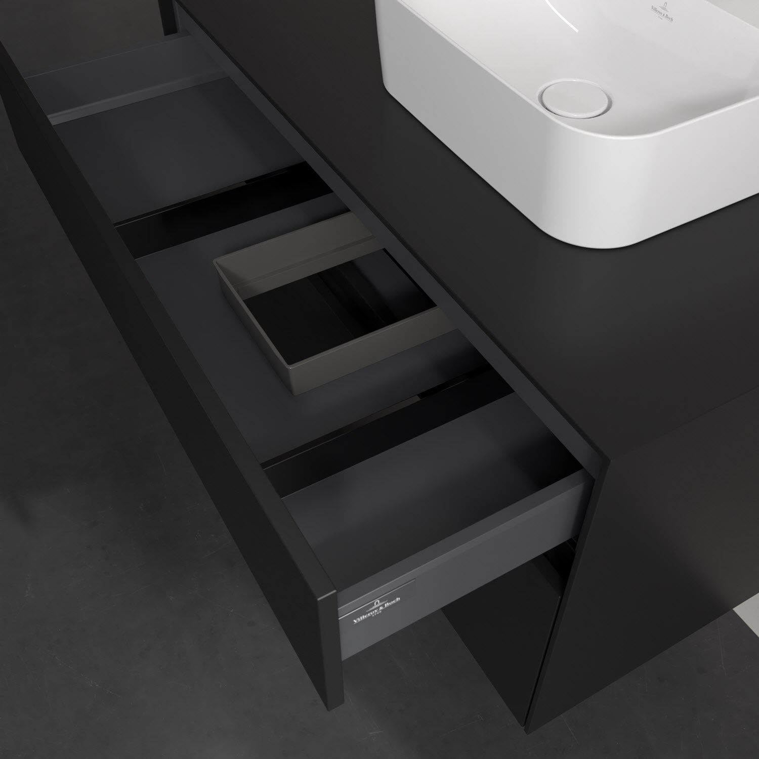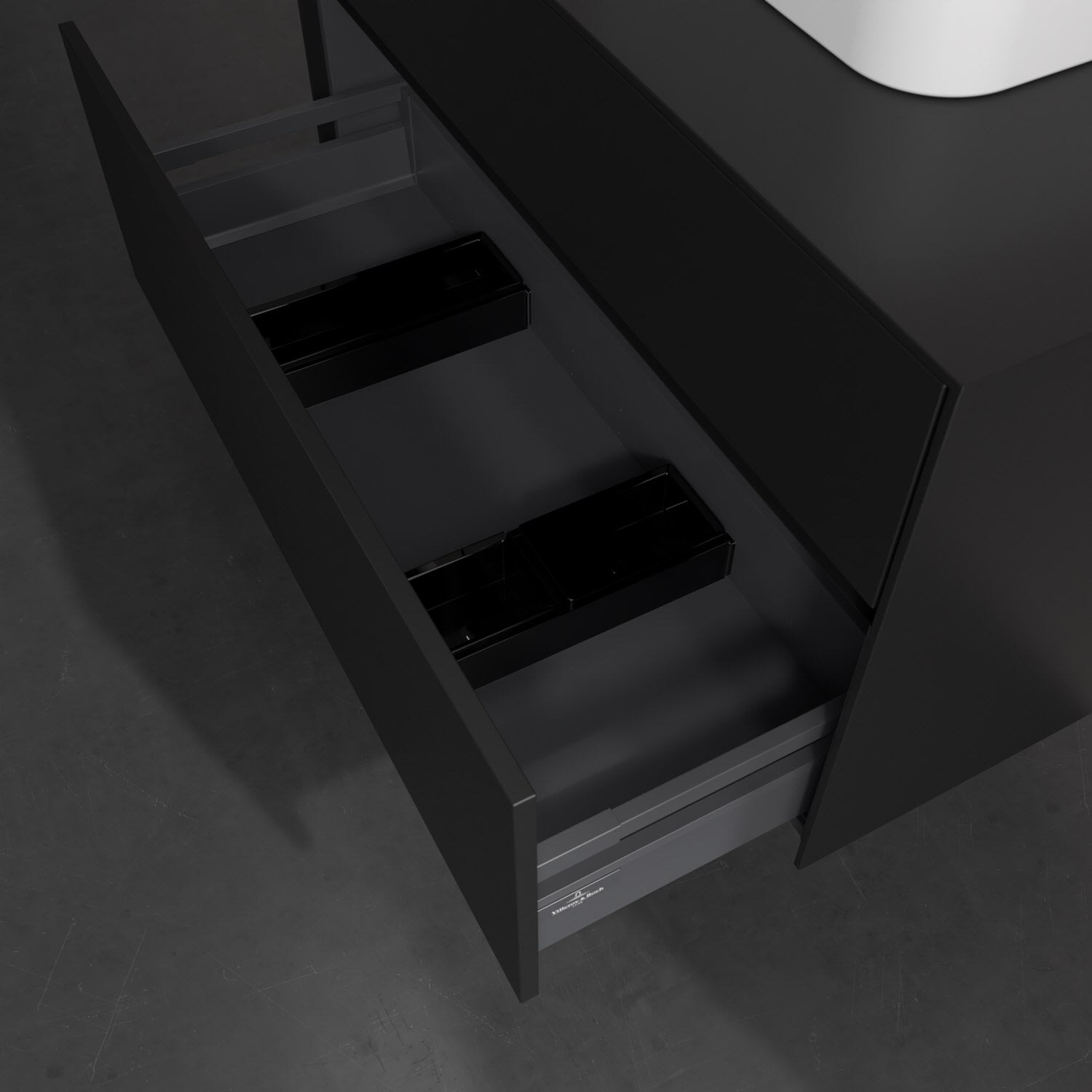 Zeitgemäßes Design und feine Linien: Der Villeroy & Boch Waschbeckenunterschrank aus der Collaro Kollektion mit zwei Auszügen glänzt mit vielen Vorzügen. Eine integrierte Griffleiste sorgt für eine schlichte, moderne Front. Im Inneren bietet das Möbelstück erstaunlich viel Komfort – ermöglicht durch großzügigen Stauraum und den integrierten Antirutschboden. Die variabel setzbaren Glasabtrennungen und die mitgelieferte Accessory Box bieten Badutensilien ausreichend Platz und sorgen für den nötigen Überblick. Dank SoftClosing und Selbsteinzug lassen sich die Auszüge nach der Nutzung lautlos schließen. Die Front ist mit einer hochwertigen Lackierung versehen, deren Anti-Fingerprint-Oberfläche unschönen Fingerabdrücken vorbeugt.