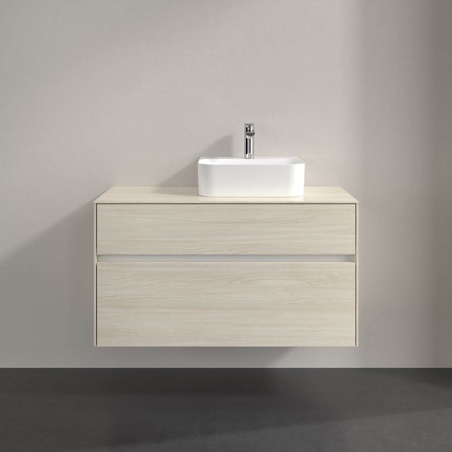 Villeroy & Boch Antao Waschbeckenunterschrank, 100 x 36 cm, 1 Auszug, Front ohne Struktur, mit Hahnloch