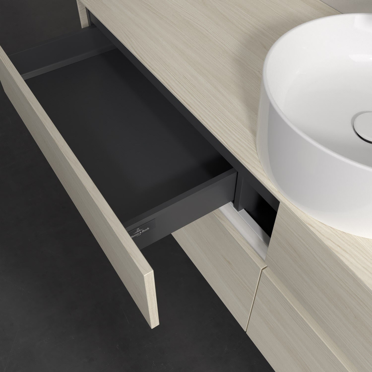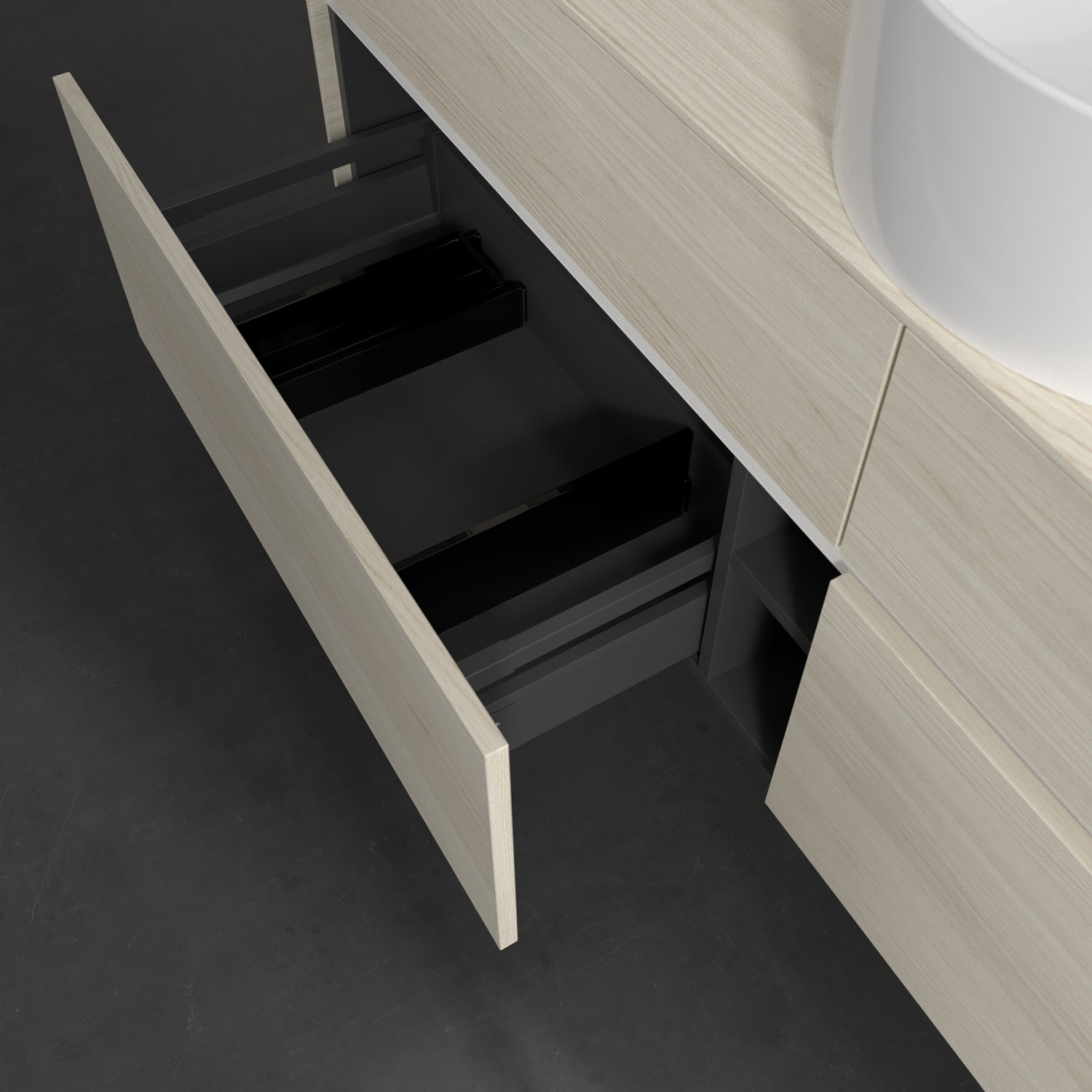 - kein Umfallen oder Verrutschen von Pflegeprodukten in den Schubladen dank rutschhemmendem Boden
