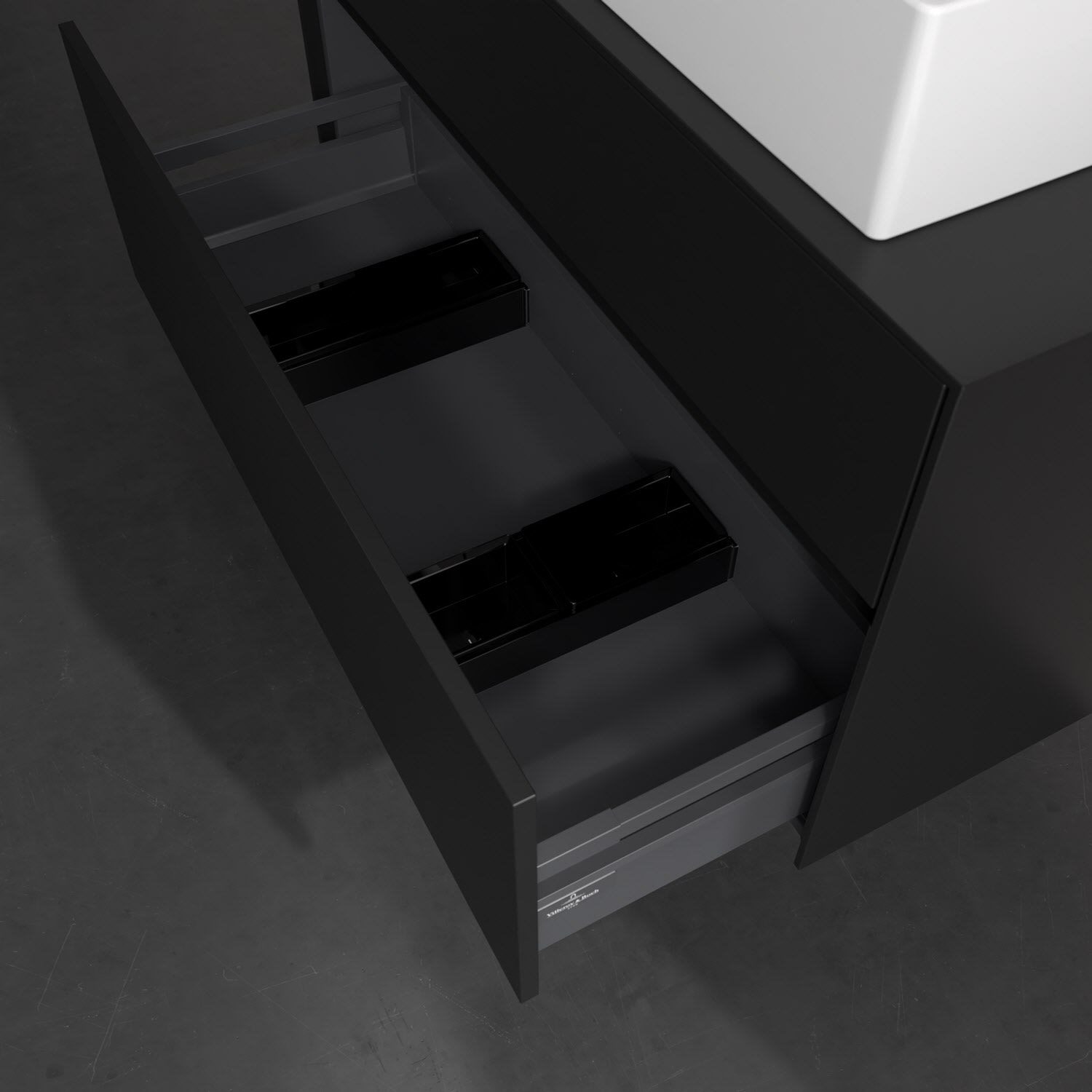 Zeitgemäßes Design und feine Linien: Der Villeroy & Boch Waschbeckenunterschrank aus der Collaro Kollektion mit zwei Auszügen glänzt mit vielen Vorzügen. Eine integrierte Griffleiste sorgt für eine schlichte, moderne Front. Im Inneren bietet das Möbelstück erstaunlich viel Komfort – ermöglicht durch großzügigen Stauraum und den integrierten Antirutschboden. Die variabel setzbaren Glasabtrennungen und die mitgelieferte Accessory Box bieten Badutensilien ausreichend Platz und sorgen für den nötigen Überblick. Dank SoftClosing und Selbsteinzug lassen sich die Auszüge nach der Nutzung lautlos schließen. Die Front ist mit einer hochwertigen Lackierung versehen, deren Anti-Fingerprint-Oberfläche unschönen Fingerabdrücken vorbeugt.