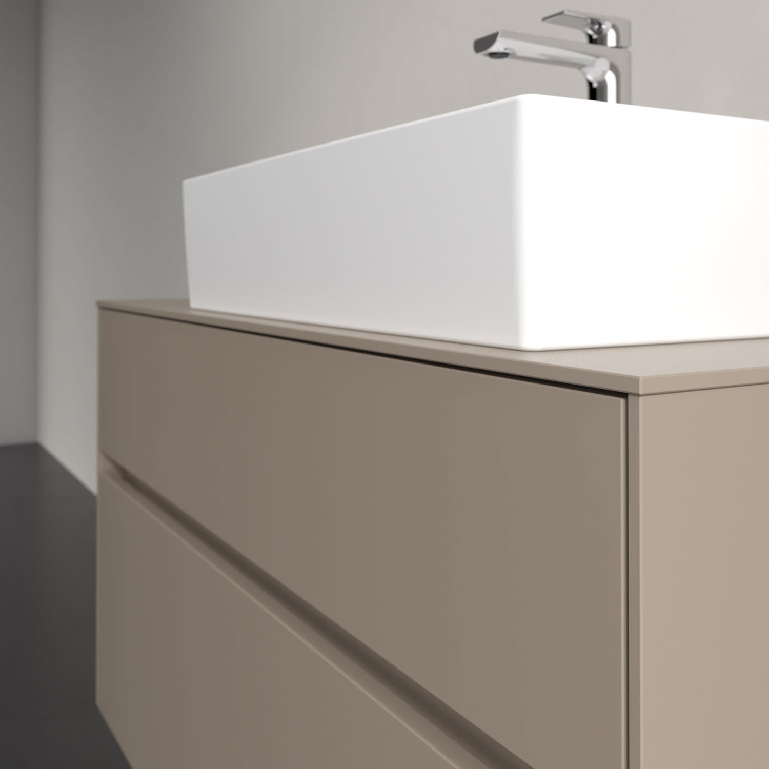 Zeitgemäßes Design und feine Linien: Der Villeroy & Boch Waschbeckenunterschrank aus der Collaro Kollektion mit zwei Auszügen glänzt mit vielen Vorzügen. Eine Griffleiste mit integrierter, stufenlos einstellbarer LED-Beleuchtung sorgt für eine schlichte, stimmungsvolle Front. Steuern lässt sich das Licht über einen Touch-Sensor seitlich am Unterschrank. Im Inneren bietet das Möbelstück erstaunlich viel Komfort – ermöglicht durch großzügigen Stauraum und den integrierten Antirutschboden. Die variabel setzbaren Glasabtrennungen und die mitgelieferte Accessory Box bieten Badutensilien ausreichend Platz und sorgen für den nötigen Überblick. Dank SoftClosing und Selbsteinzug lassen sich die Auszüge nach der Nutzung lautlos schließen. Die Front ist mit einer hochwertigen Lackierung versehen, deren Anti-Fingerprint-Oberfläche unschönen Fingerabdrücken vorbeugt.