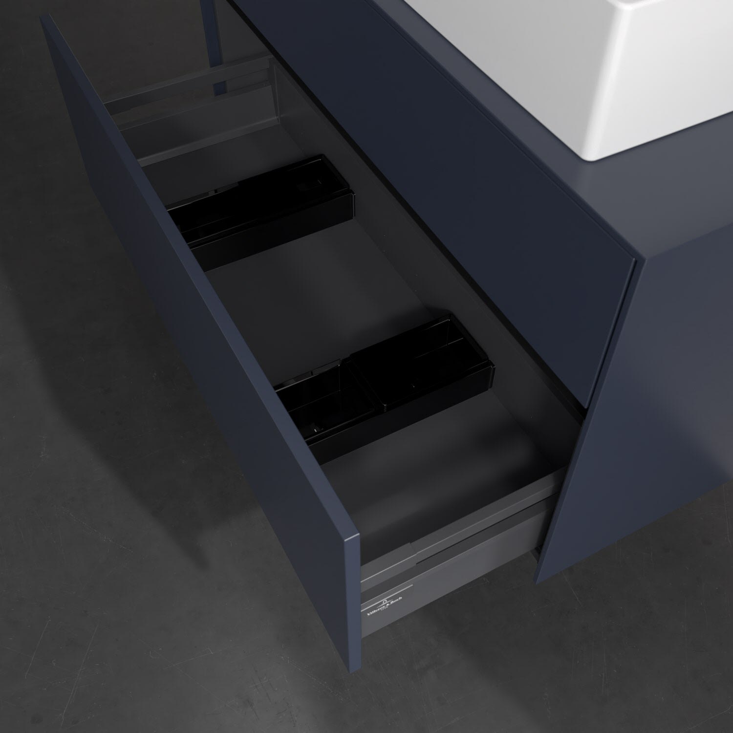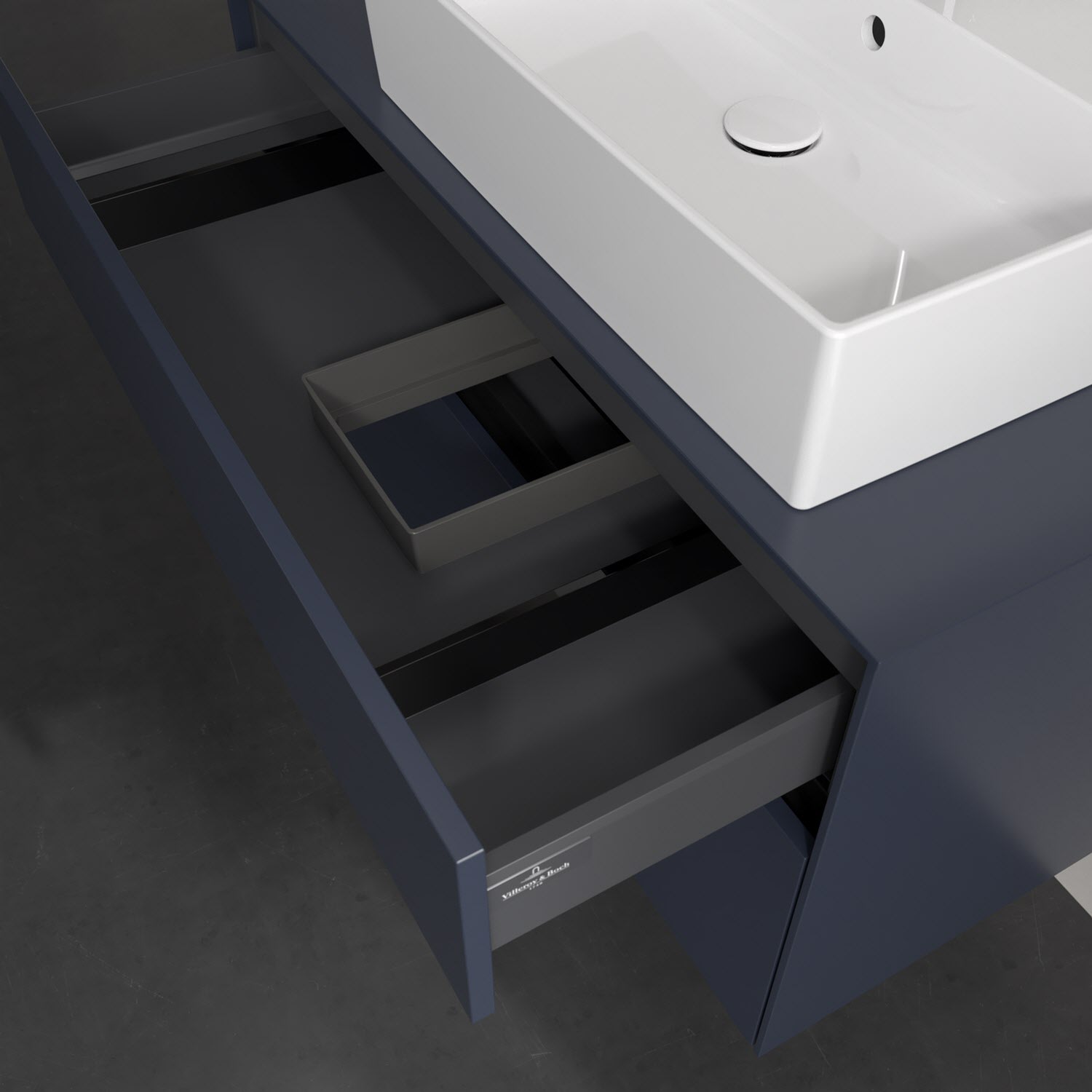 Zeitgemäßes Design und feine Linien: Der Villeroy & Boch Waschbeckenunterschrank aus der Collaro Kollektion mit zwei Auszügen glänzt mit vielen Vorzügen. Eine Griffleiste mit integrierter, stufenlos einstellbarer LED-Beleuchtung sorgt für eine schlichte, stimmungsvolle Front. Steuern lässt sich das Licht über einen Touch-Sensor seitlich am Unterschrank. Im Inneren bietet das Möbelstück erstaunlich viel Komfort – ermöglicht durch großzügigen Stauraum und den integrierten Antirutschboden. Die variabel setzbaren Glasabtrennungen und die mitgelieferte Accessory Box bieten Badutensilien ausreichend Platz und sorgen für den nötigen Überblick. Dank SoftClosing und Selbsteinzug lassen sich die Auszüge nach der Nutzung lautlos schließen. Die Front ist mit einer hochwertigen Lackierung versehen, deren Anti-Fingerprint-Oberfläche unschönen Fingerabdrücken vorbeugt.