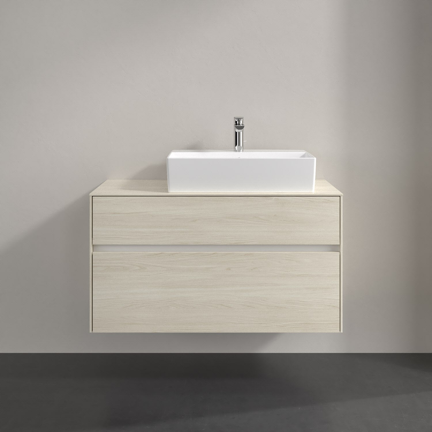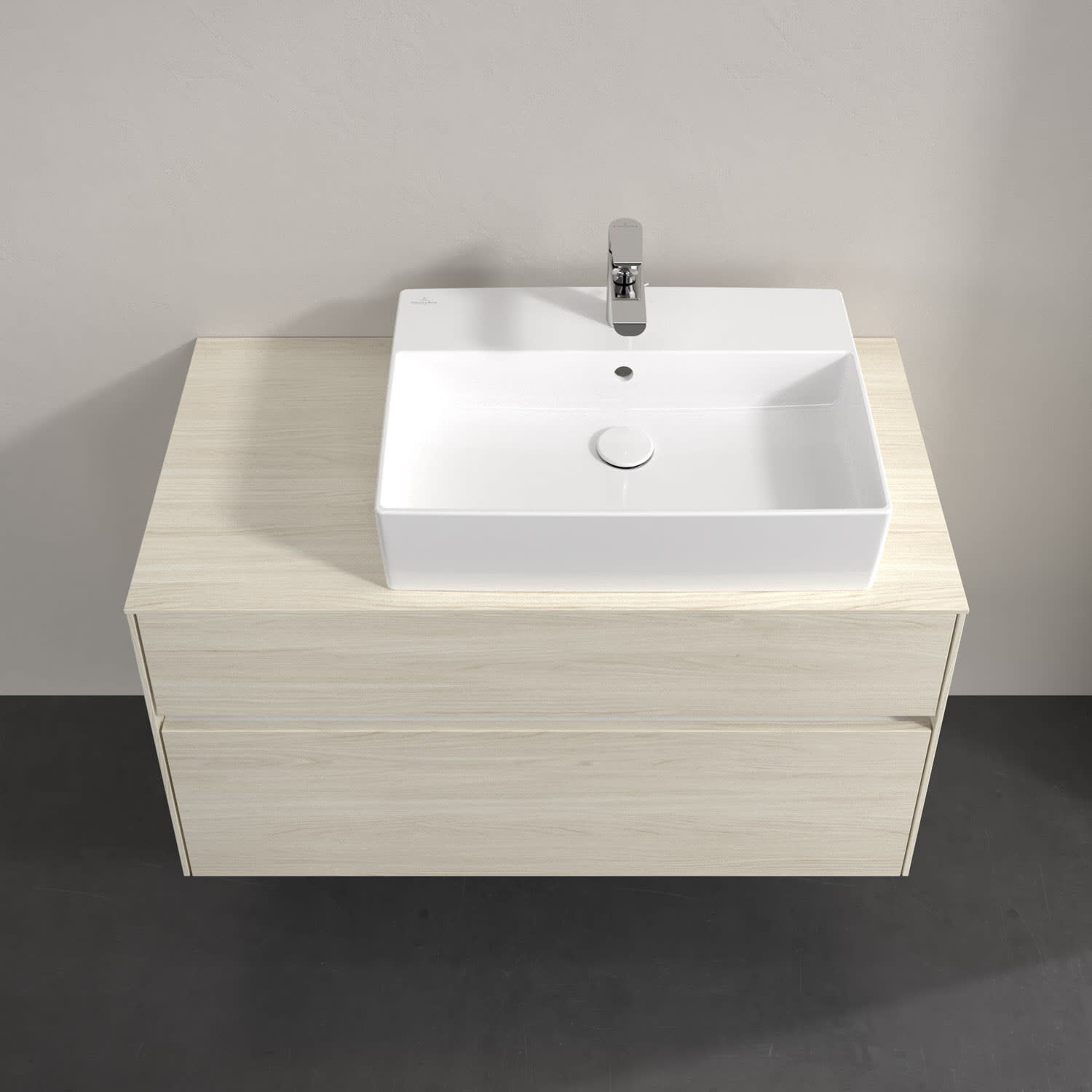 Villeroy & Boch Antao Waschbeckenunterschrank, 100 x 36 cm, 1 Auszug, Front ohne Struktur, mit Hahnloch
