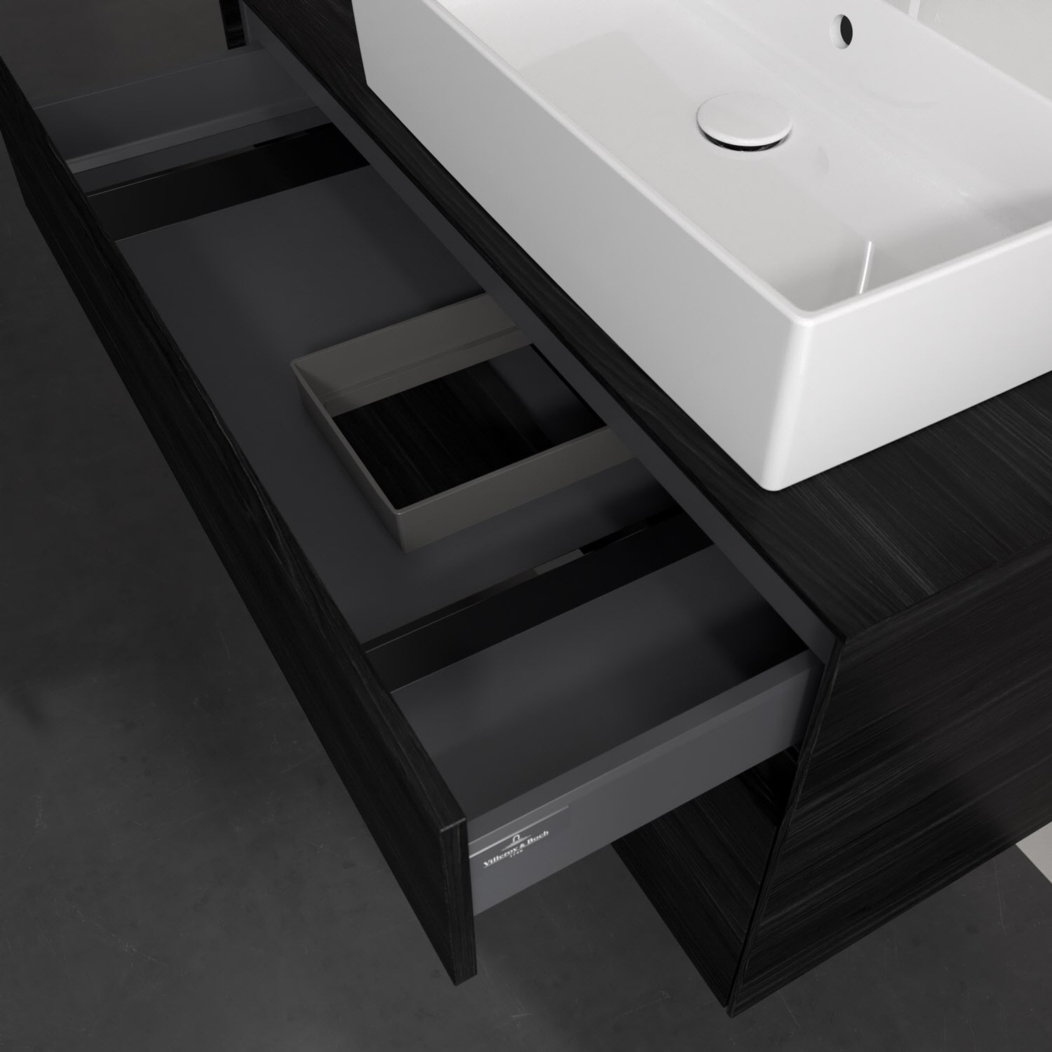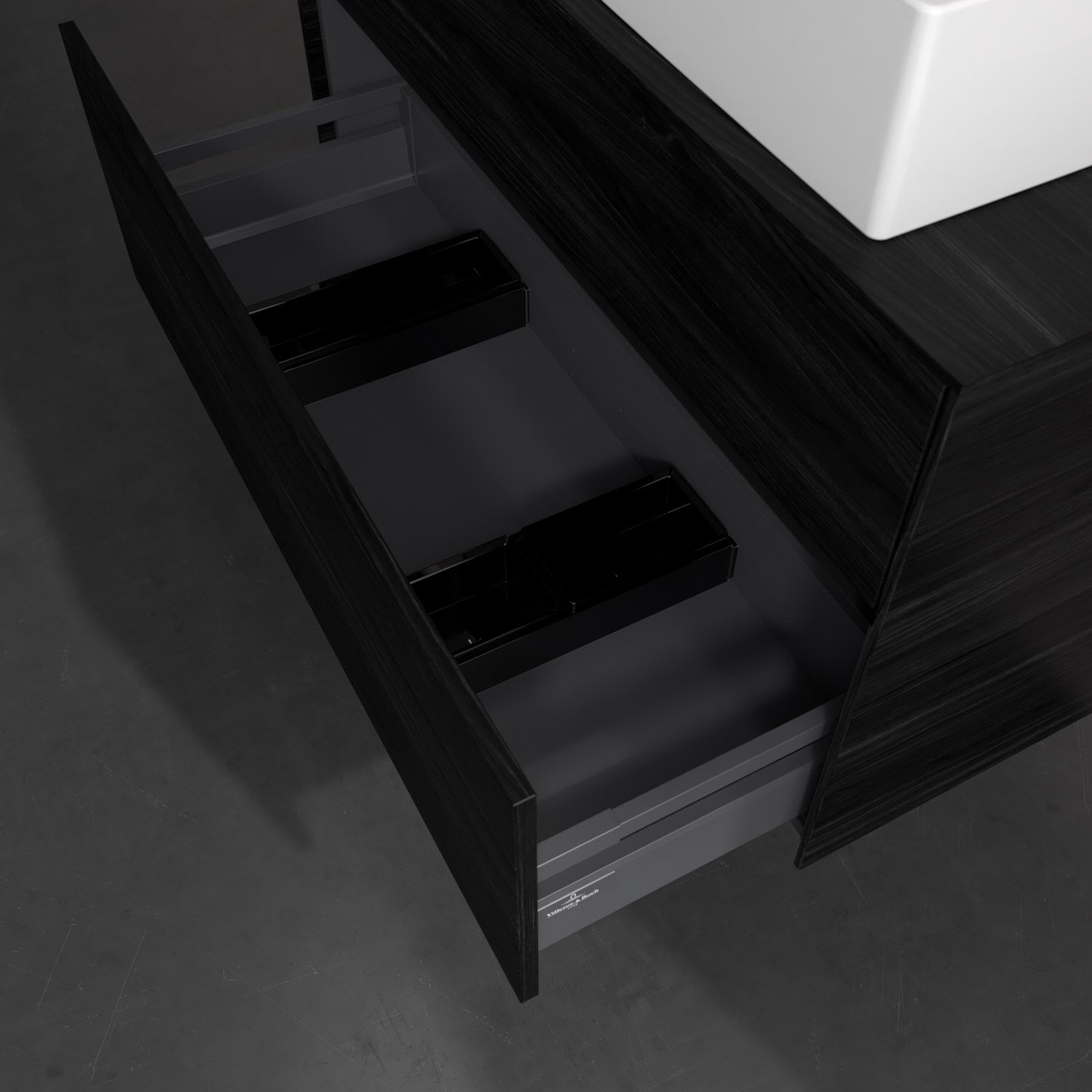 Zeitgemäßes Design und feine Linien: Der Villeroy & Boch Waschbeckenunterschrank aus der Collaro Kollektion mit zwei Auszügen glänzt mit vielen Vorzügen. Eine Griffleiste mit integrierter, stufenlos einstellbarer LED-Beleuchtung sorgt für eine schlichte, stimmungsvolle Front. Steuern lässt sich das Licht über einen Touch-Sensor seitlich am Unterschrank. Im Inneren bietet das Möbelstück erstaunlich viel Komfort – ermöglicht durch großzügigen Stauraum und den integrierten Antirutschboden. Die variabel setzbaren Glasabtrennungen und die mitgelieferte Accessory Box bieten Badutensilien ausreichend Platz und sorgen für den nötigen Überblick. Dank SoftClosing und Selbsteinzug lassen sich die Auszüge nach der Nutzung lautlos schließen. Die Front ist mit einer hochwertigen Lackierung versehen, deren Anti-Fingerprint-Oberfläche unschönen Fingerabdrücken vorbeugt.