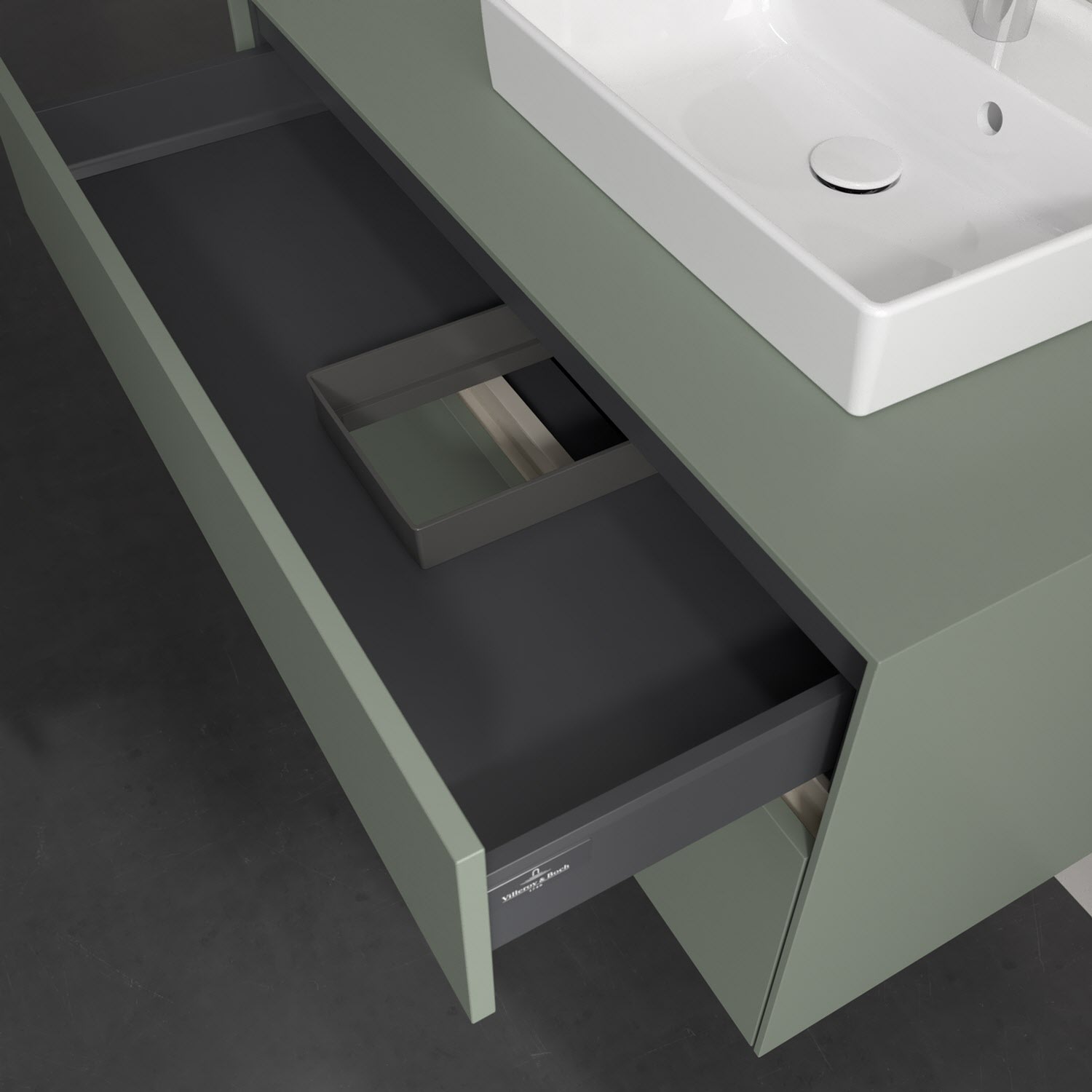 Zeitgemäßes Design und feine Linien: Der Villeroy & Boch Waschbeckenunterschrank aus der Collaro Kollektion mit zwei Auszügen glänzt mit vielen Vorzügen. Eine integrierte Griffleiste sorgt für eine schlichte, moderne Front. Im Inneren bietet das Möbelstück erstaunlich viel Komfort – ermöglicht durch großzügigen Stauraum und den integrierten Antirutschboden. Die variabel setzbaren Glasabtrennungen und die mitgelieferte Accessory Box bieten Badutensilien ausreichend Platz und sorgen für den nötigen Überblick. Dank SoftClosing und Selbsteinzug lassen sich die Auszüge nach der Nutzung lautlos schließen. Die Front ist mit einer hochwertigen Lackierung versehen, deren Anti-Fingerprint-Oberfläche unschönen Fingerabdrücken vorbeugt.