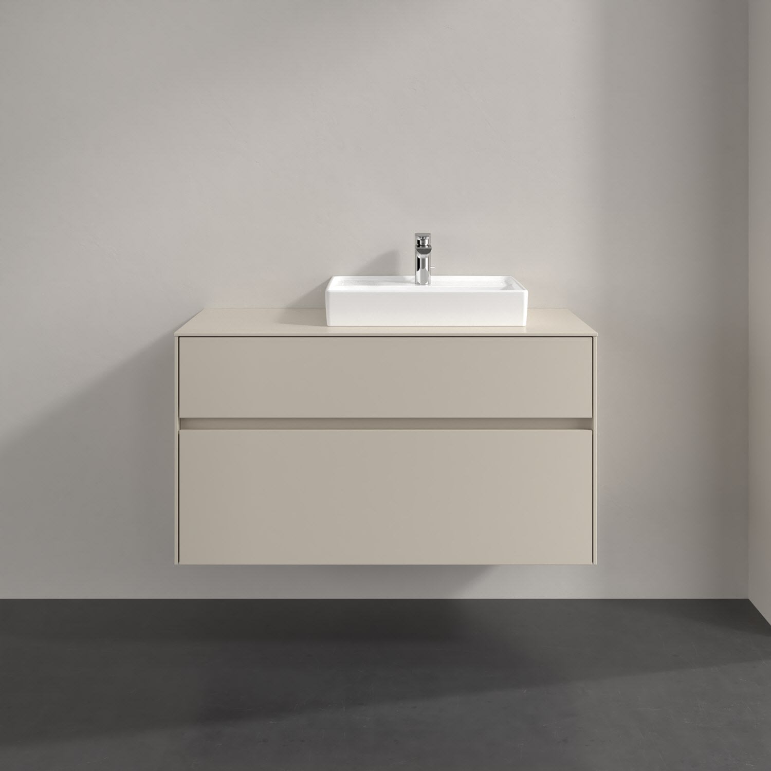 Villeroy & Boch Antao Waschbeckenunterschrank, 100 x 36 cm, 1 Auszug, Front ohne Struktur, mit Hahnloch