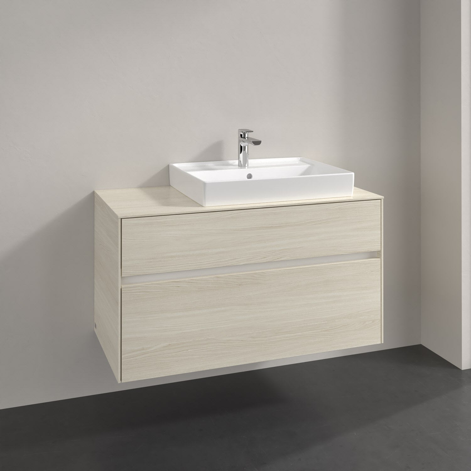 Villeroy & Boch Antao Waschbeckenunterschrank, 100 x 36 cm, 1 Auszug, Front ohne Struktur, mit Hahnloch