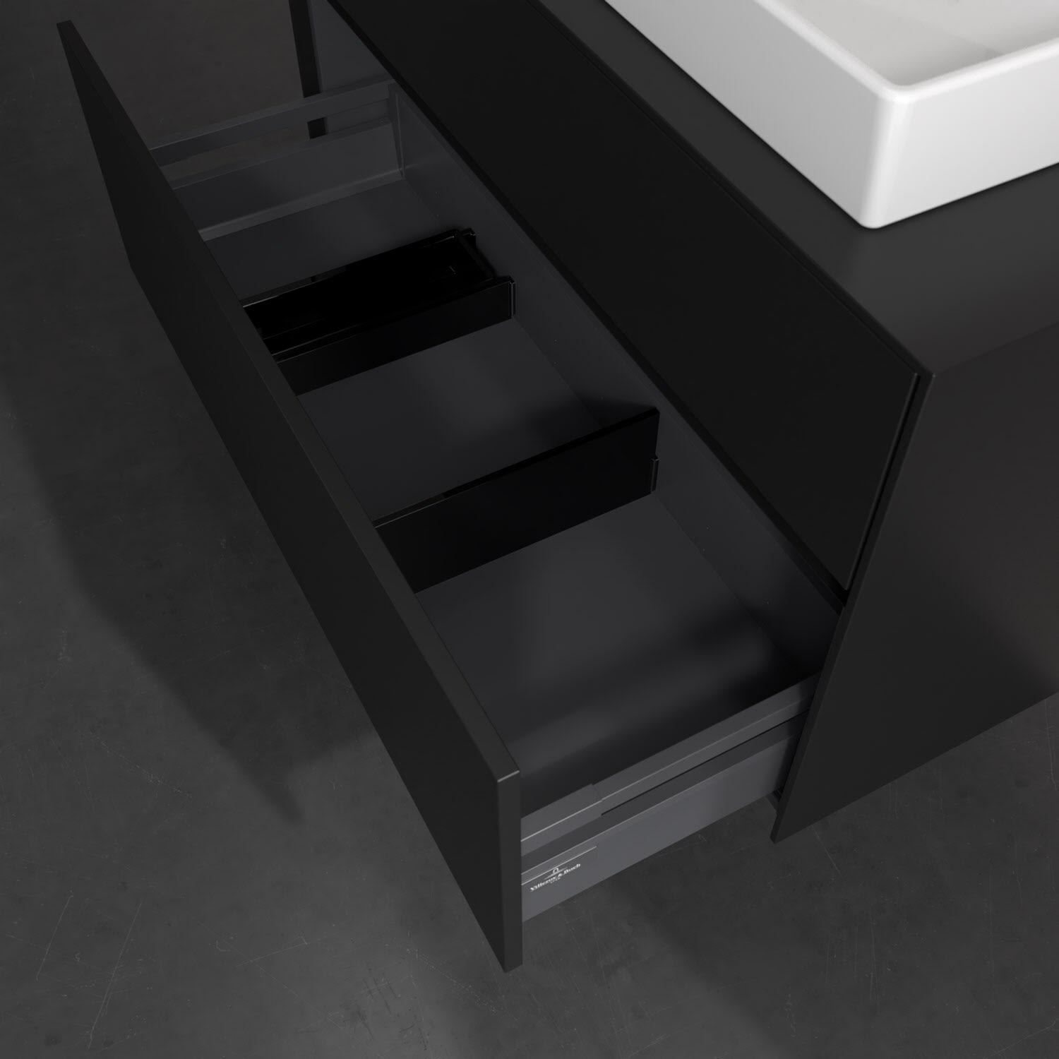 - kein Umfallen oder Verrutschen von Pflegeprodukten in den Schubladen dank rutschhemmendem Boden