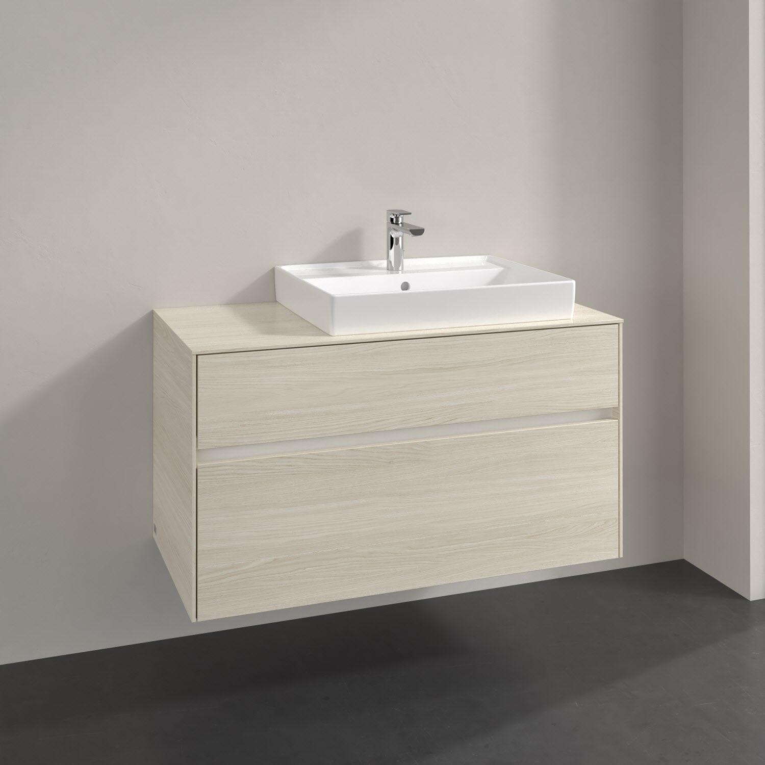 Villeroy & Boch Antao Waschbeckenunterschrank, 100 x 36 cm, 1 Auszug, Front ohne Struktur, mit Hahnloch