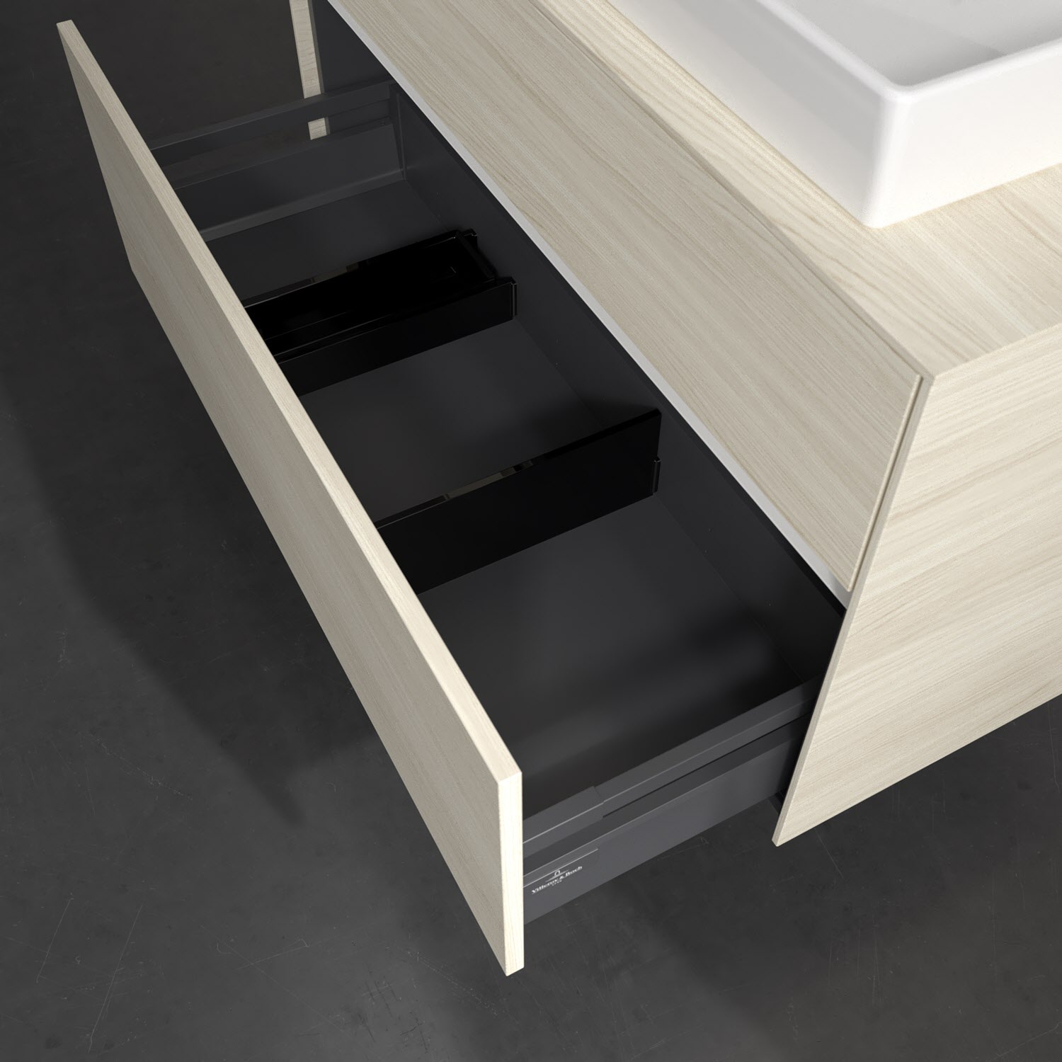 - kein Umfallen oder Verrutschen von Pflegeprodukten in den Schubladen dank rutschhemmendem Boden