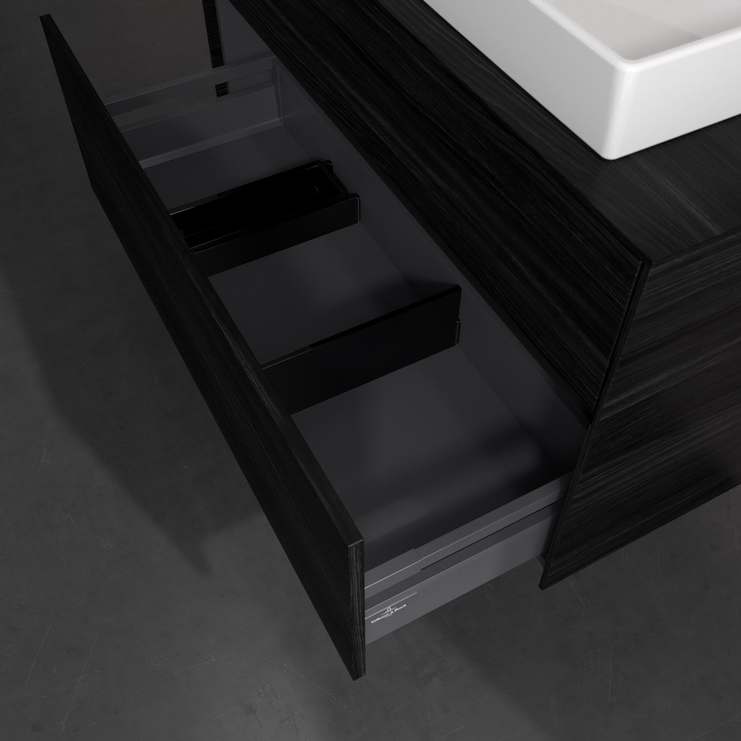 - kein Umfallen oder Verrutschen von Pflegeprodukten in den Schubladen dank rutschhemmendem Boden