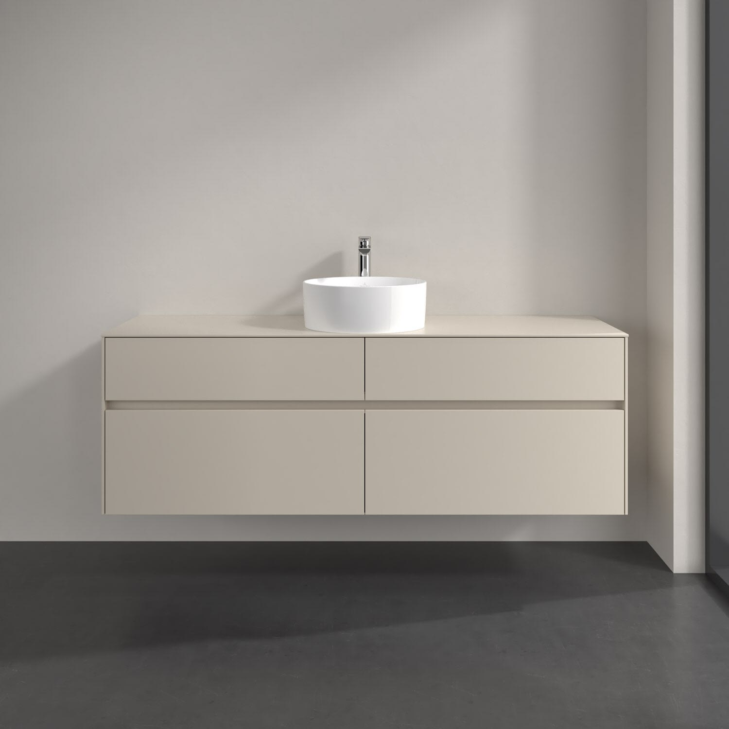 Stauraumwunder im zeitgemäßen Design: Der Villeroy & Boch Waschbeckenunterschrank aus der Collaro Kollektion eignet sich besonders für Familienbäder und bietet genau den Platz, der dort benötigt wird. Stimmungsvolles Highlight der schlichten, modernen Front ist die integrierte Griffmulde mit stufenlos einstellbarer LED-Beleuchtung. Steuern lässt sie sich über einen Touch-Sensor seitlich am Unterschrank. Im Inneren bietet das Möbelstück mit vier Auszügen erstaunlich viel Komfort – ermöglicht durch großzügiges Platzangebot und den integrierten Antirutschboden. Variabel setzbare Glasabtrennungen und mitgelieferte Accessory Boxen sorgen für den nötigen Überblick. Dank SoftClosing und Selbsteinzug lassen sich die Auszüge nach der Nutzung lautlos schließen. Die Front ist mit einer hochwertigen Lackierung versehen, deren Anti-Fingerprint-Oberfläche unschönen Fingerabdrücken vorbeugt.