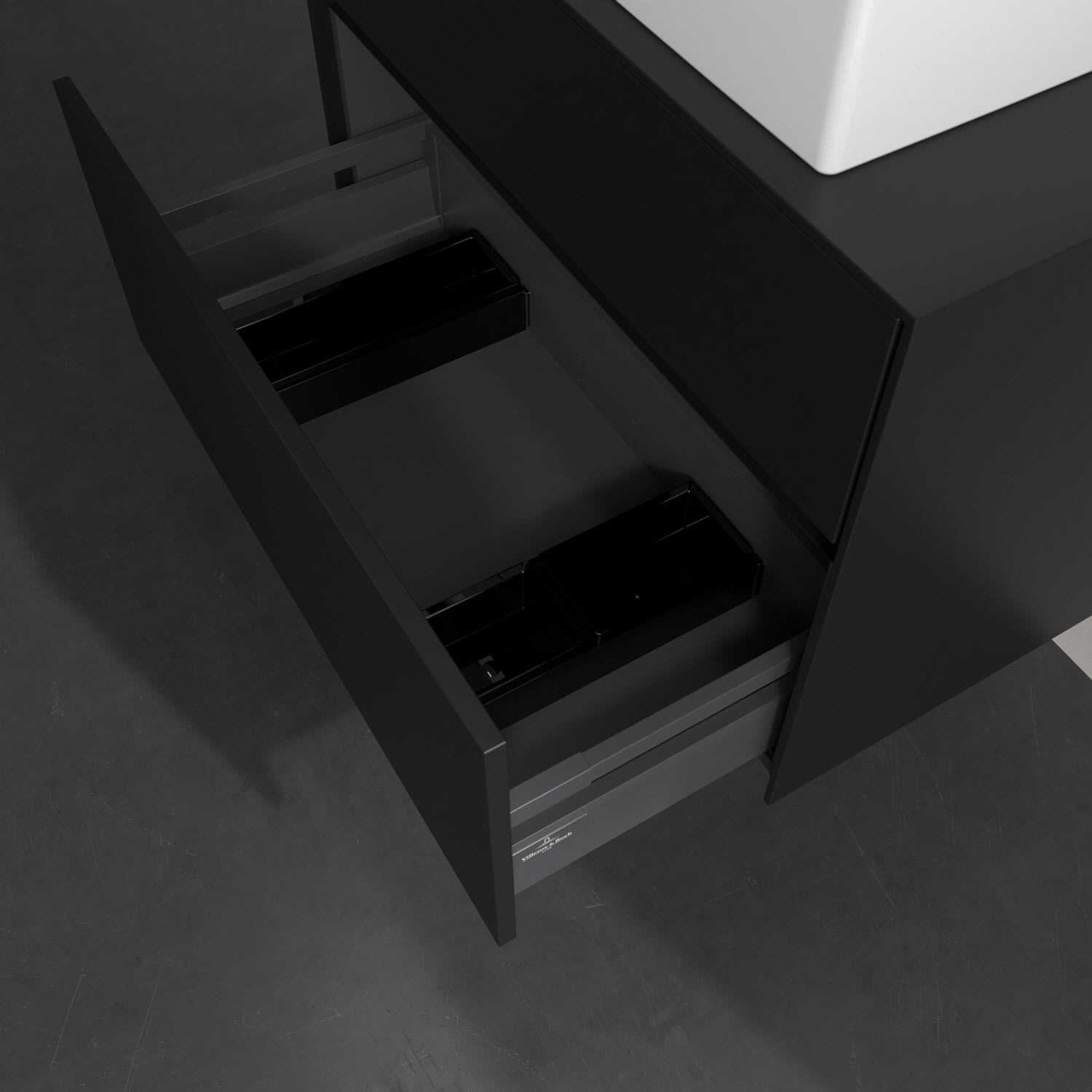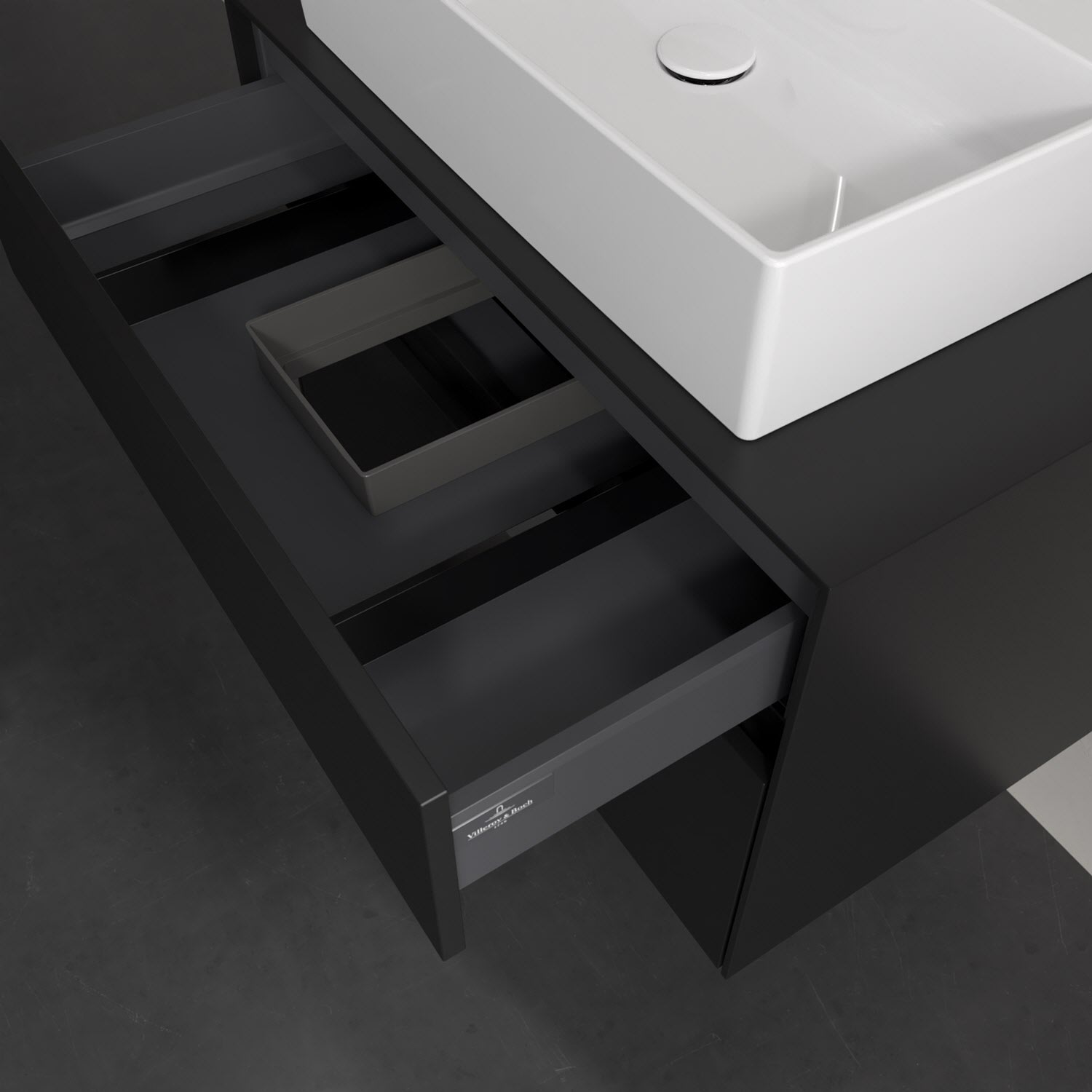 Zeitgemäßes Design und feine Linien: Der Villeroy & Boch Waschbeckenunterschrank aus der Collaro Kollektion mit zwei Auszügen glänzt mit vielen Vorzügen. Eine Griffleiste mit integrierter, stufenlos einstellbarer LED-Beleuchtung sorgt für eine schlichte, stimmungsvolle Front. Steuern lässt sich das Licht über einen Touch-Sensor seitlich am Unterschrank. Im Inneren bietet das Möbelstück erstaunlich viel Komfort – ermöglicht durch großzügigen Stauraum und den integrierten Antirutschboden. Die variabel setzbaren Glasabtrennungen und die mitgelieferte Accessory Box bieten Badutensilien ausreichend Platz und sorgen für den nötigen Überblick. Dank SoftClosing und Selbsteinzug lassen sich die Auszüge nach der Nutzung lautlos schließen. Die Front ist mit einer hochwertigen Lackierung versehen, deren Anti-Fingerprint-Oberfläche unschönen Fingerabdrücken vorbeugt.