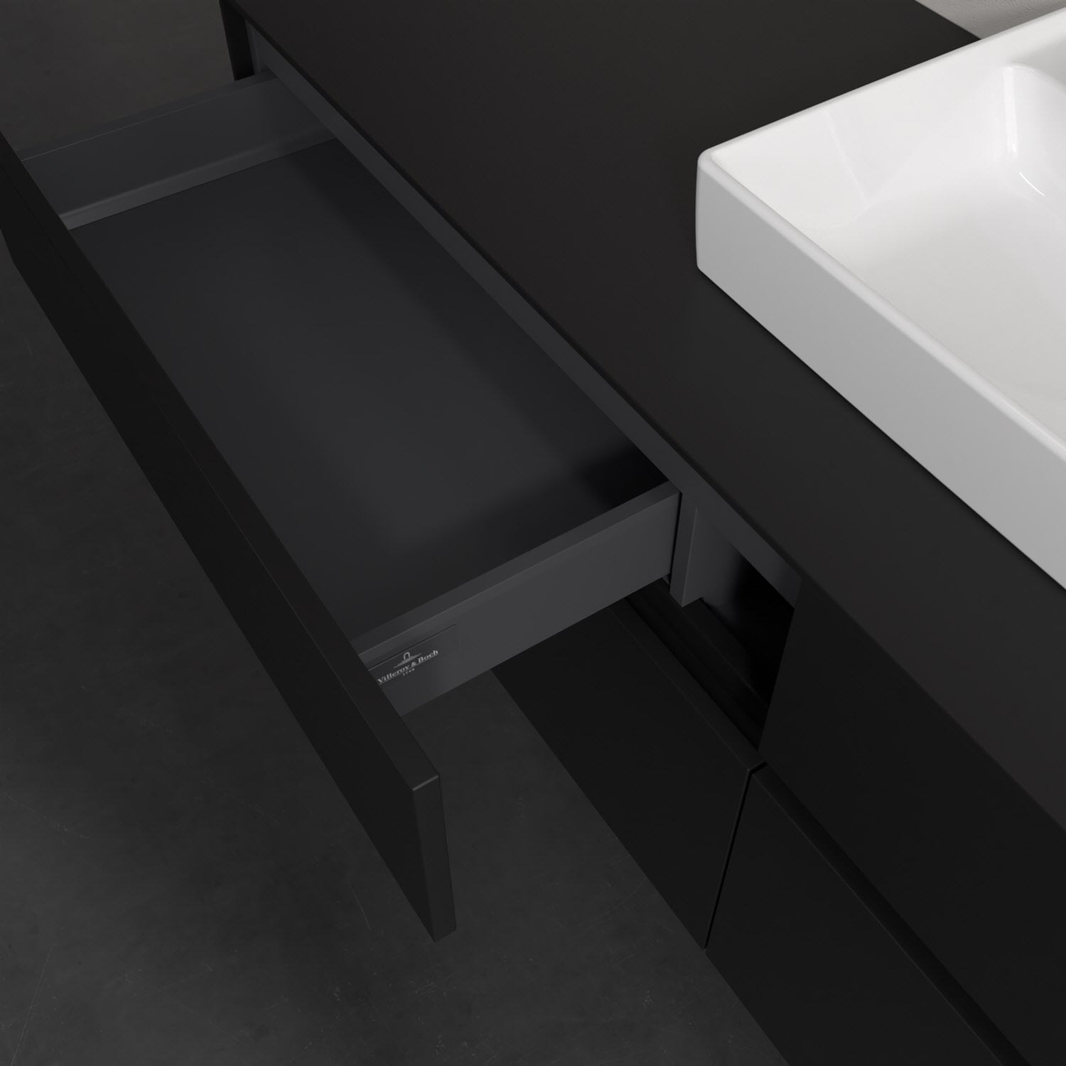 Stauraumwunder im zeitgemäßen Design: Der Villeroy & Boch Waschbeckenunterschrank aus der Collaro Kollektion eignet sich besonders für Familienbäder und bietet genau den Platz, der dort benötigt wird. Stimmungsvolles Highlight der schlichten, modernen Front ist die integrierte Griffmulde mit stufenlos einstellbarer LED-Beleuchtung. Im Inneren bietet das Möbelstück mit vier Auszügen erstaunlich viel Komfort – ermöglicht durch großzügiges Platzangebot und den integrierten Antirutschboden. Variabel setzbare Glasabtrennungen und mitgelieferte Accessory Boxen sorgen für den nötigen Überblick. Dank SoftClosing und Selbsteinzug lassen sich die Auszüge nach der Nutzung lautlos schließen. Die Front ist mit einer hochwertigen Lackierung versehen, deren Anti-Fingerprint-Oberfläche unschönen Fingerabdrücken vorbeugt.