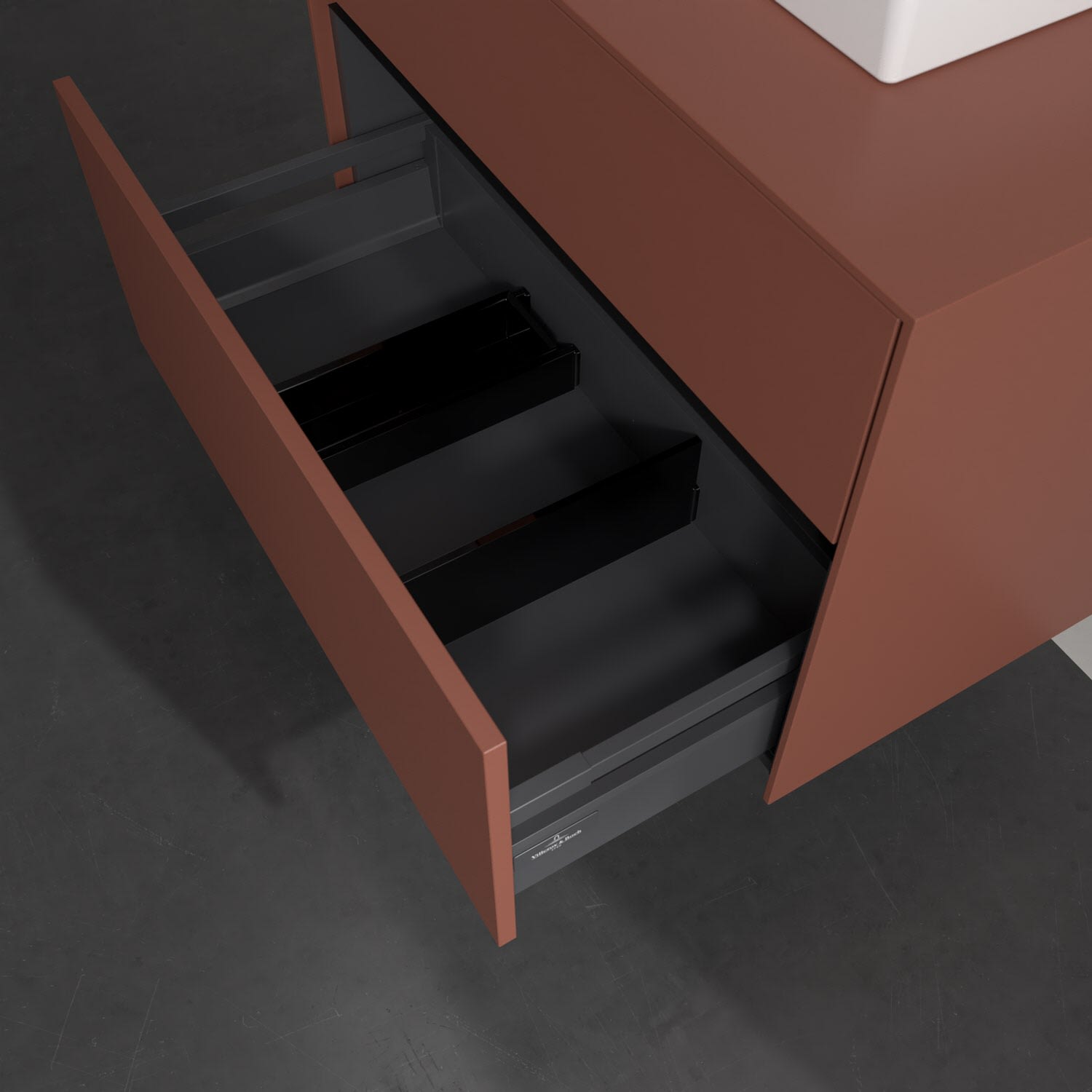 - kein Umfallen oder Verrutschen von Pflegeprodukten in den Schubladen dank rutschhemmendem Boden