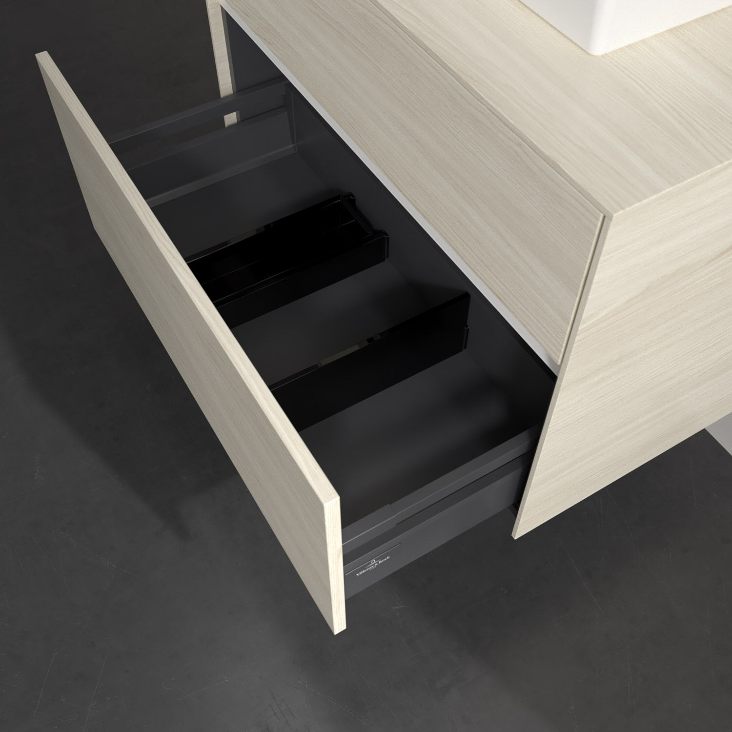 - kein Umfallen oder Verrutschen von Pflegeprodukten in den Schubladen dank rutschhemmendem Boden