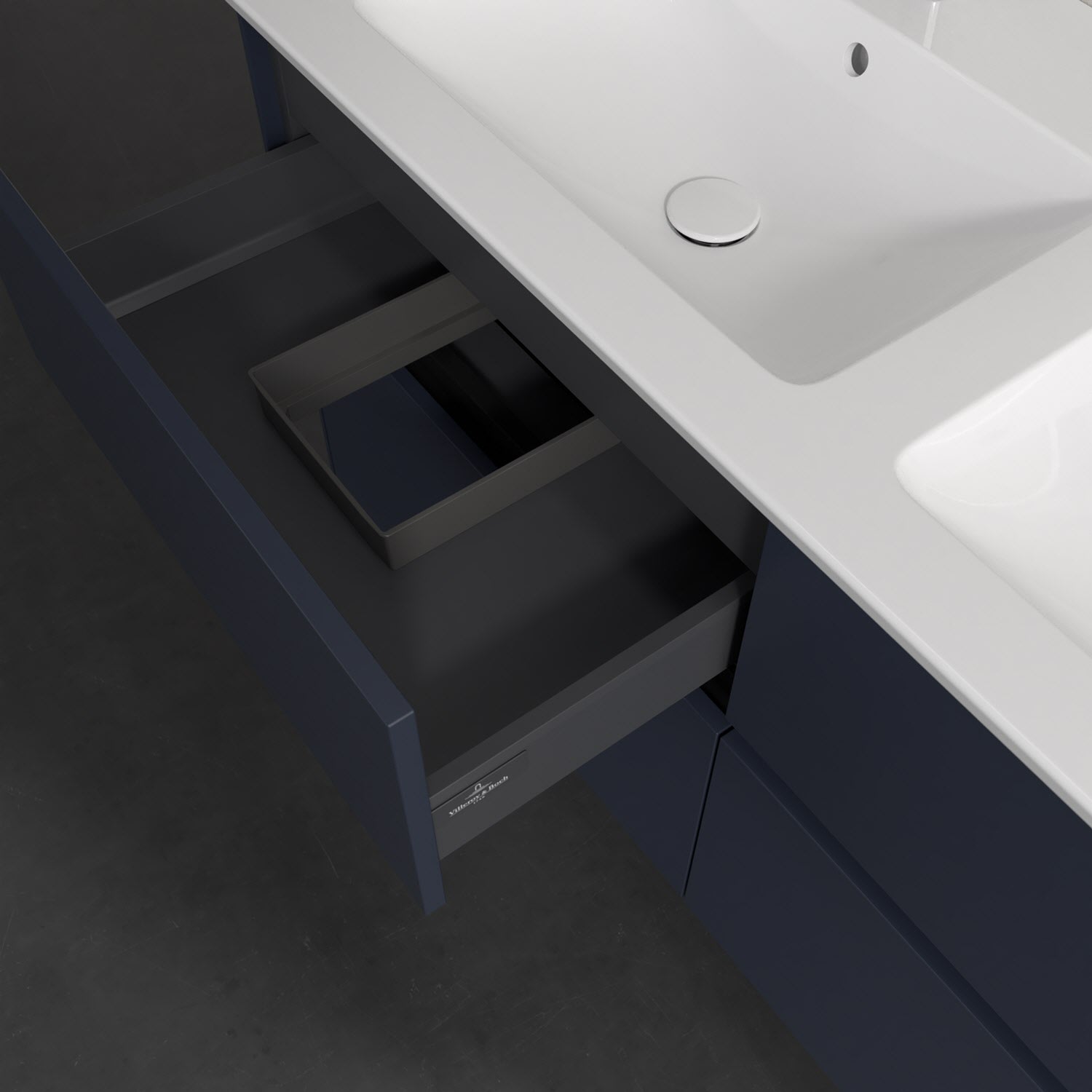 Stauraumwunder im zeitgemäßen Design: Der Villeroy & Boch Waschbeckenunterschrank aus der Collaro Kollektion eignet sich besonders für Familienbäder und bietet genau den Platz, der dort benötigt wird. Eine integrierte Griffleiste sorgt für eine schlichte, moderne Front. Im Inneren bietet das Möbelstück mit vier Auszügen erstaunlich viel Komfort – ermöglicht durch großzügiges Platzangebot und den integrierten Antirutschboden. Variabel setzbare Glasabtrennungen und mitgelieferte Accessory Boxen sorgen für den nötigen Überblick. Dank SoftClosing und Selbsteinzug lassen sich die Auszüge nach der Nutzung lautlos schließen. Die Front ist mit einer hochwertigen Lackierung versehen, deren Anti-Fingerprint-Oberfläche unschönen Fingerabdrücken vorbeugt.