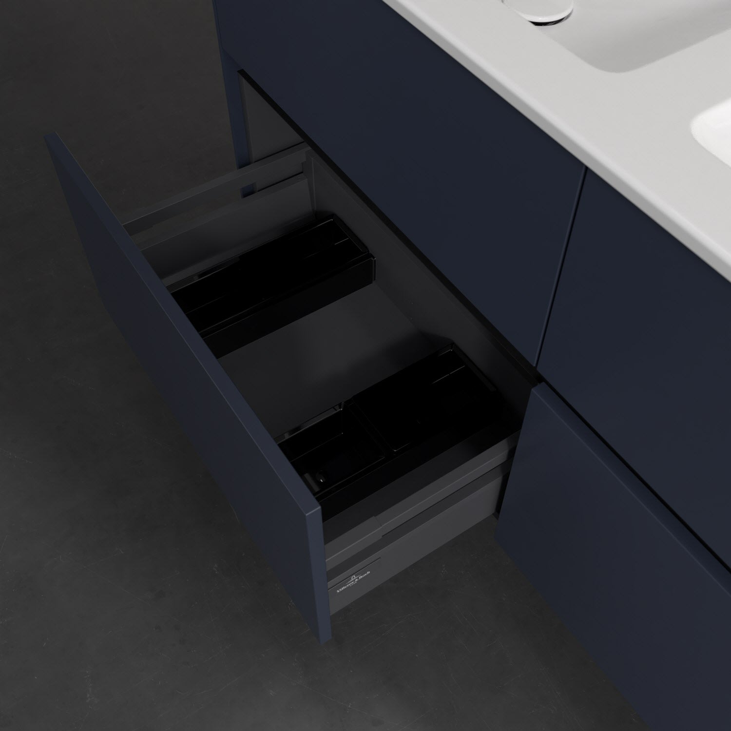 Stauraumwunder im zeitgemäßen Design: Der Villeroy & Boch Waschbeckenunterschrank aus der Collaro Kollektion eignet sich besonders für Familienbäder und bietet genau den Platz, der dort benötigt wird. Eine integrierte Griffleiste sorgt für eine schlichte, moderne Front. Steuern lässt sich das Licht über einen Touch-Sensor seitlich am Unterschrank. Im Inneren bietet das Möbelstück mit vier Auszügen erstaunlich viel Komfort – ermöglicht durch großzügiges Platzangebot und den integrierten Antirutschboden. Variabel setzbare Glasabtrennungen und mitgelieferte Accessory Boxen sorgen für den nötigen Überblick. Dank SoftClosing und Selbsteinzug lassen sich die Auszüge nach der Nutzung lautlos schließen. Die Front ist mit einer hochwertigen Lackierung versehen, deren Anti-Fingerprint-Oberfläche unschönen Fingerabdrücken vorbeugt.